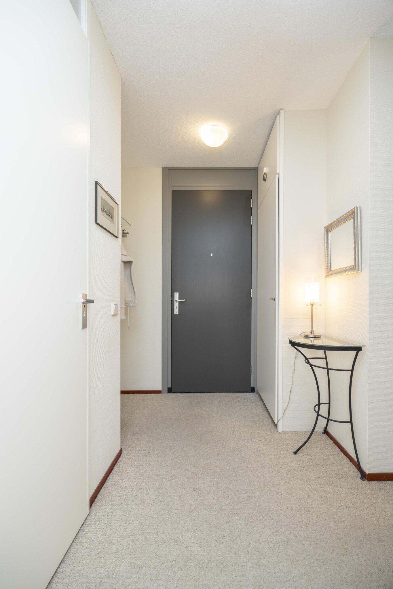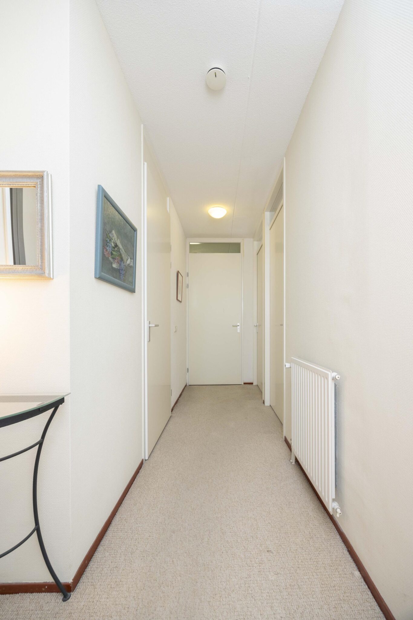 De hal is voorzien van vloerbedekking, doorgelegd naar de slaapkamers en biedt toegang tot alle vertrekken.