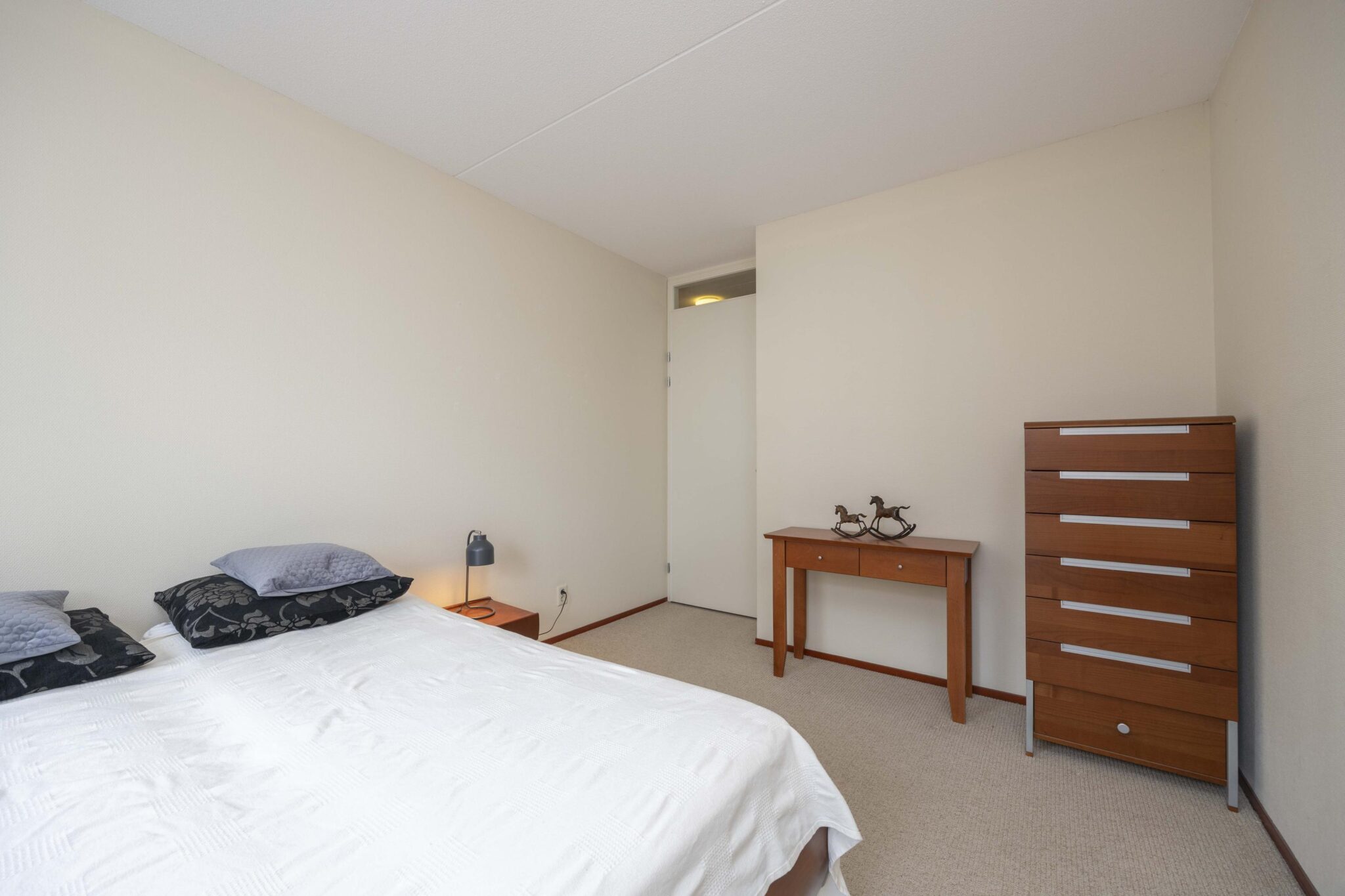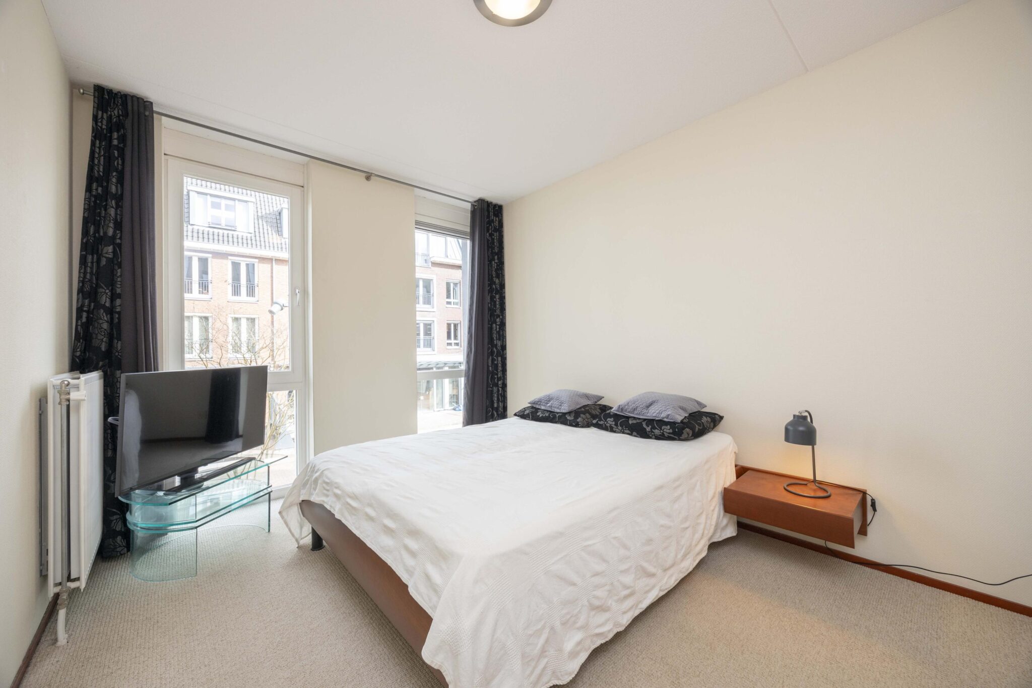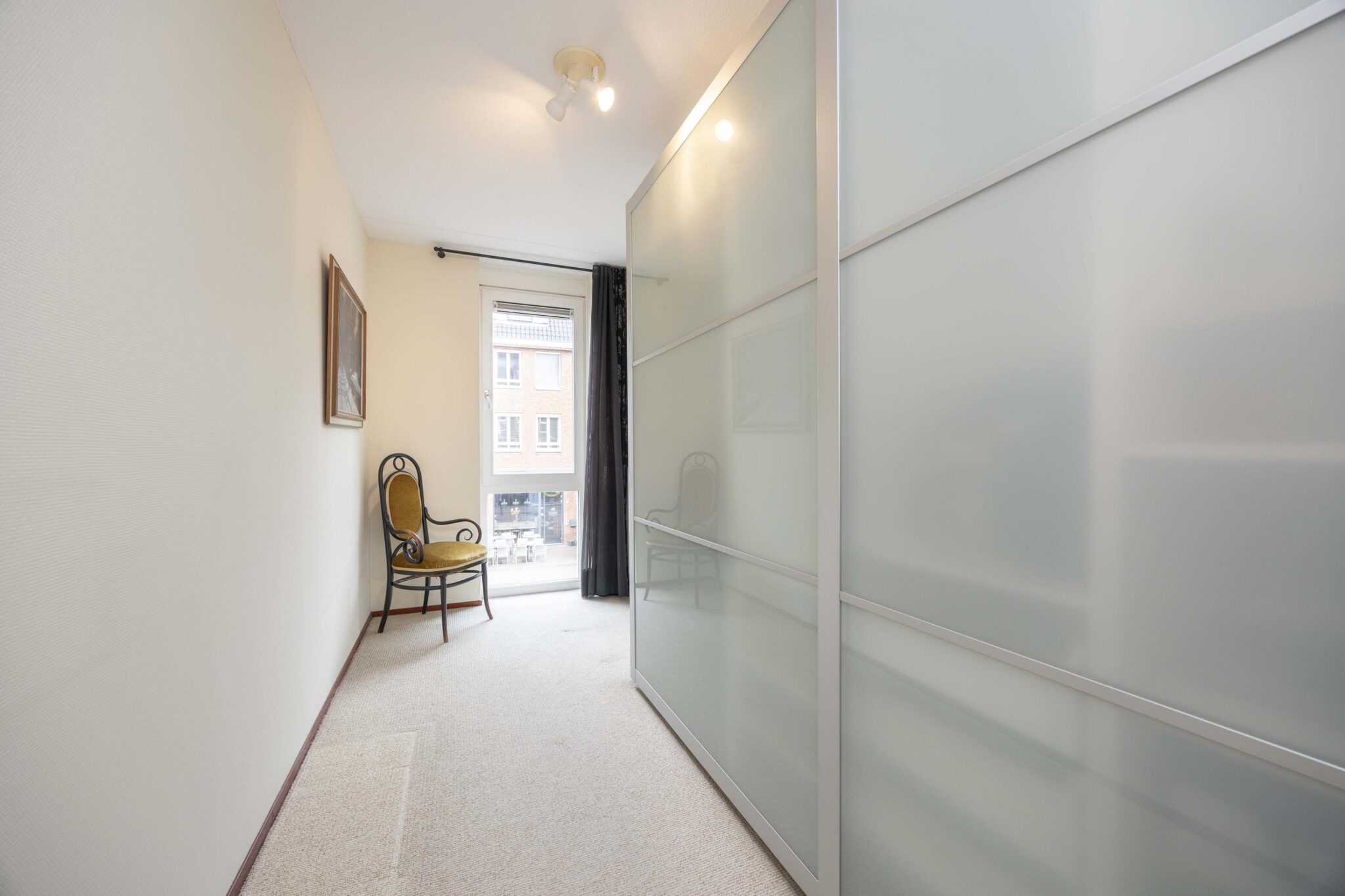 Het appartement beschikt over twee slaapkamers: de master bedroom grenzend aan de badkamer met twee riante raampartijen en een kleinere slaapkamer met eveneens één raampartij.