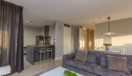 Het gehele appartement heeft vlak afgewerkte wanden, luxueus keukenblok met diverse inbouwapparatuur, te weten gaskookplaat, koelkast, combi oven/magnetron en vaatwasser. De vloer van woonkamer en keuken is v.v. duurzaam laminaat. Balkon op het zuid/westen met schuifbaar hardglazen windscherm.