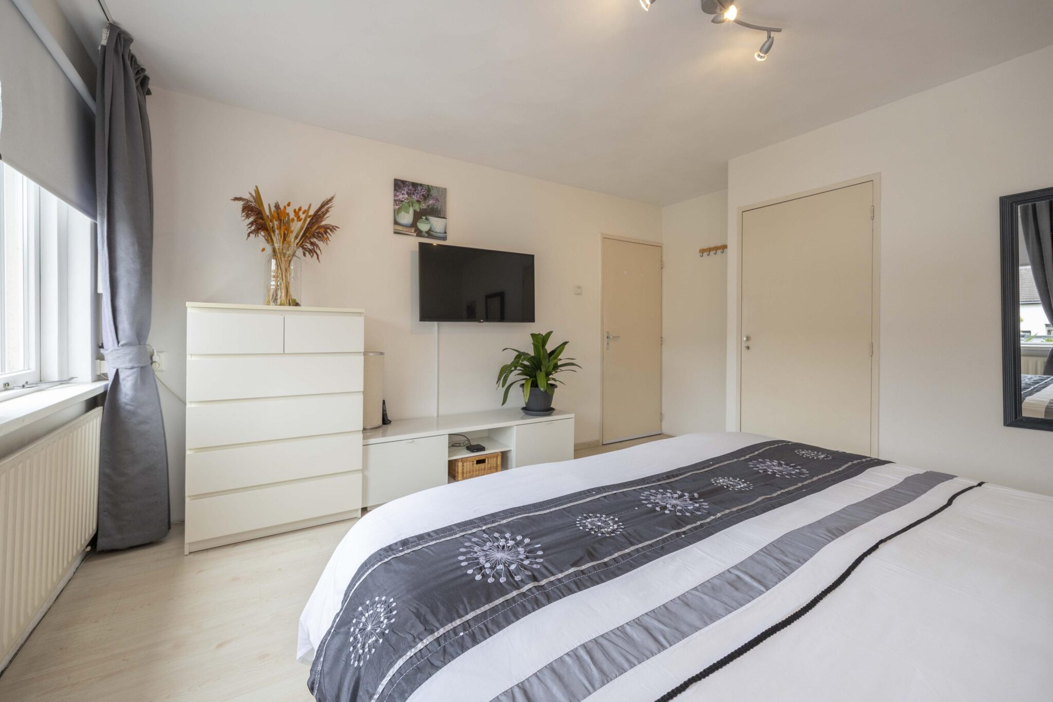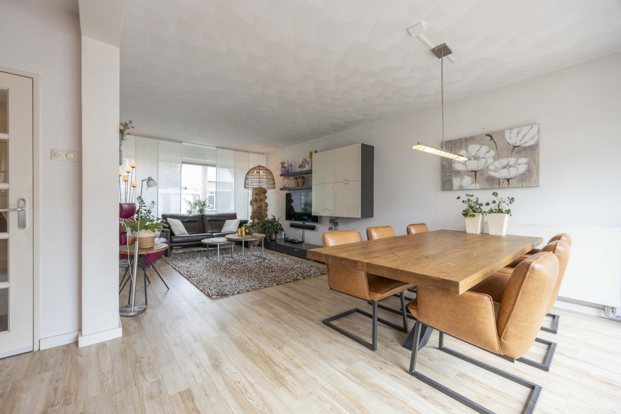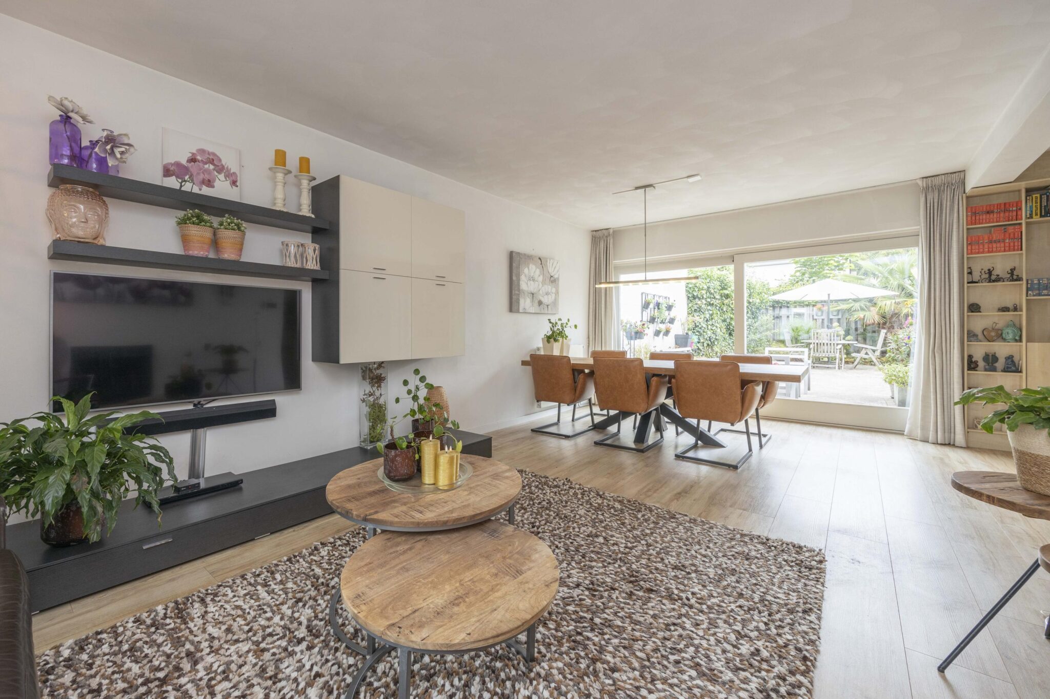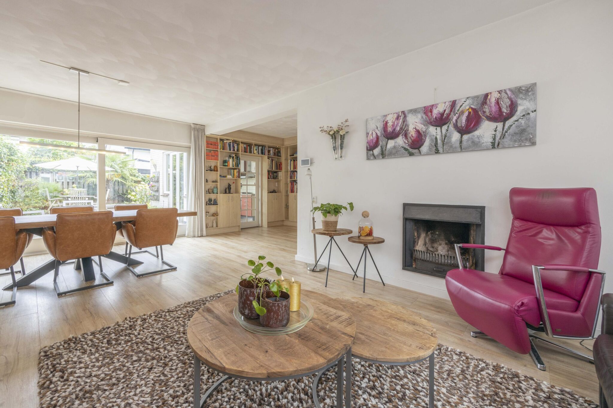 Aan de voorzijde van de living situeert zich het woonkamergedeelte met openhaard en raampartij met rolluik, aan de achterzijde een gezellig zit-/eetgedeelte met uitkijk over uw achtertuin. De living is voorzien van riante raampartijen aan zowel de voor- en achterzijde, met aan de achterzijde een schuifpui die tijdens de zomermaanden het heerlijke buitenleven naar binnen haalt. Hier profiteert u tevens van praktische opbergruimte dankzij de maatwerk kastenwanden.