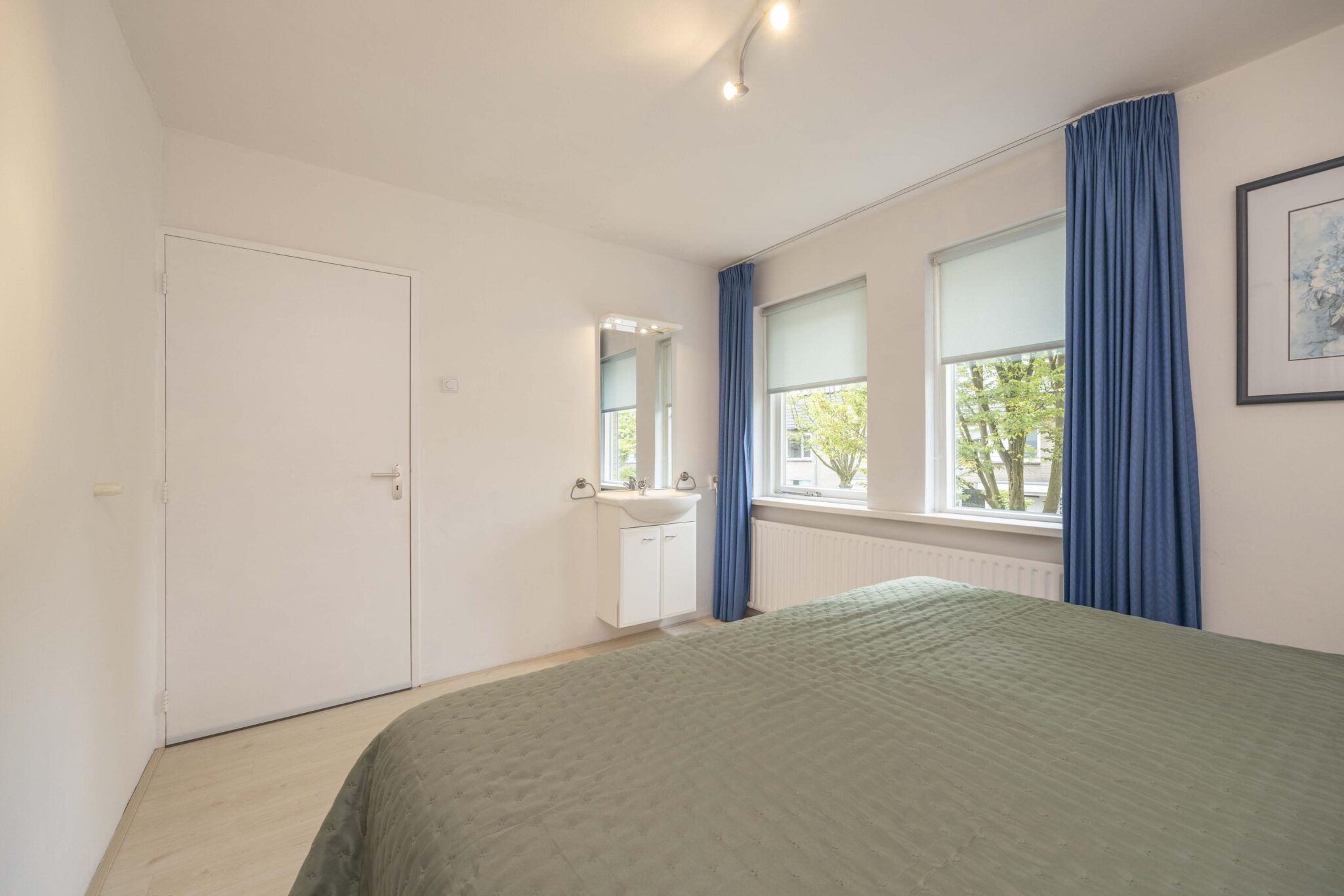 De overloop van de eerste verdieping is voorzien van een laminaat vloer, doorgelegd naar alle slaapkamers. De eerste verdieping is voorzien van drie ruime slaapkamers waarvan één gelegen aan de voorzijde met een eigen wastafel en twee slaapkamers, waaronder de master bedroom, gelegen aan de achterzijde. Alle slaapkamers zijn voorzien van elektrische rolluiken.