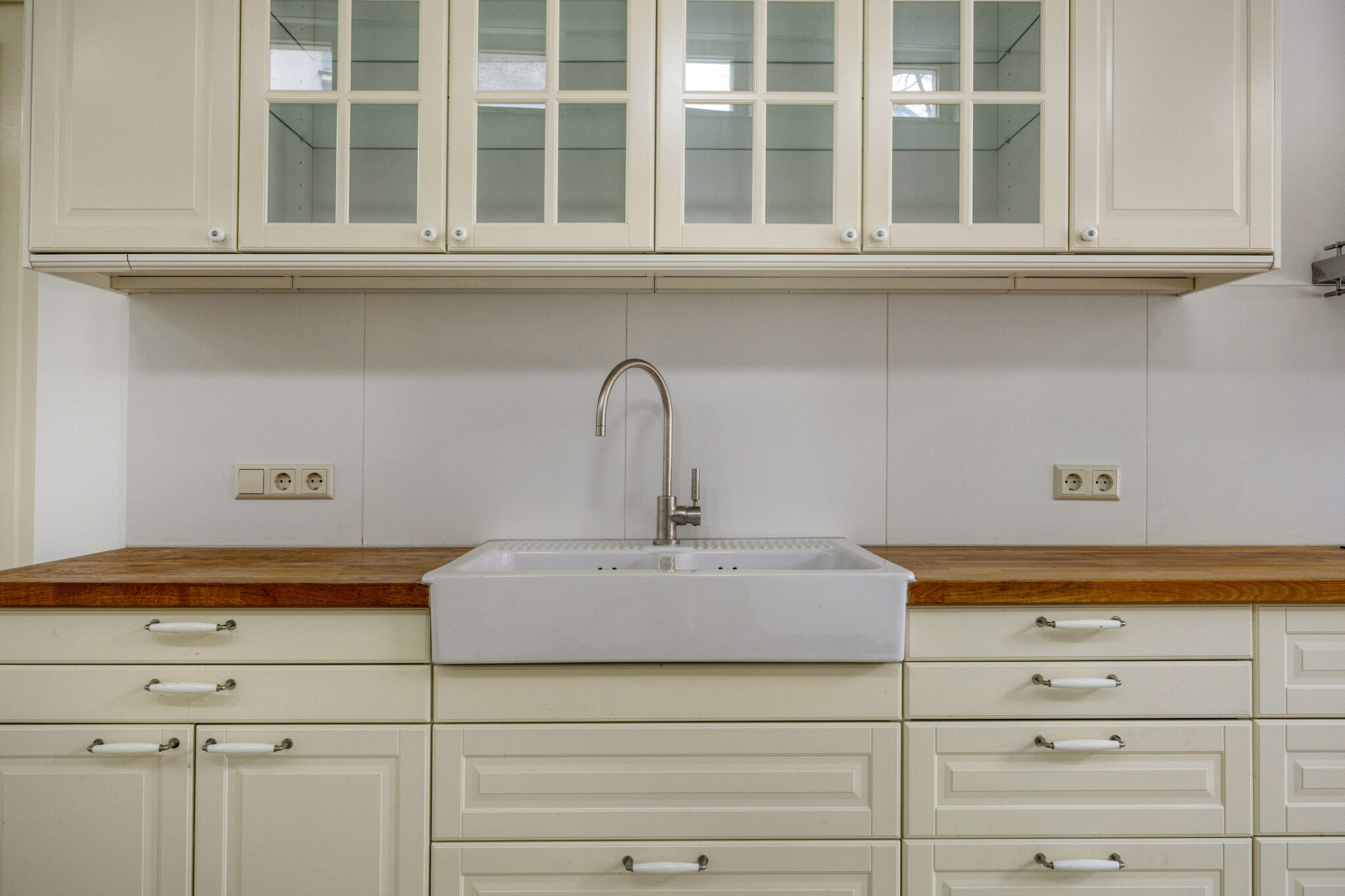 De woonkeuken is voorzien van een blauwwitte tegelvloer met vloerverwarming. De keukeninrichting in wandopstelling is voorzien van een porseleinen gootsteen, inductiekookplaat, oven en rvs afzuigschouw. Onder- en bovenkasten bieden praktische berg- en proviandruimte.