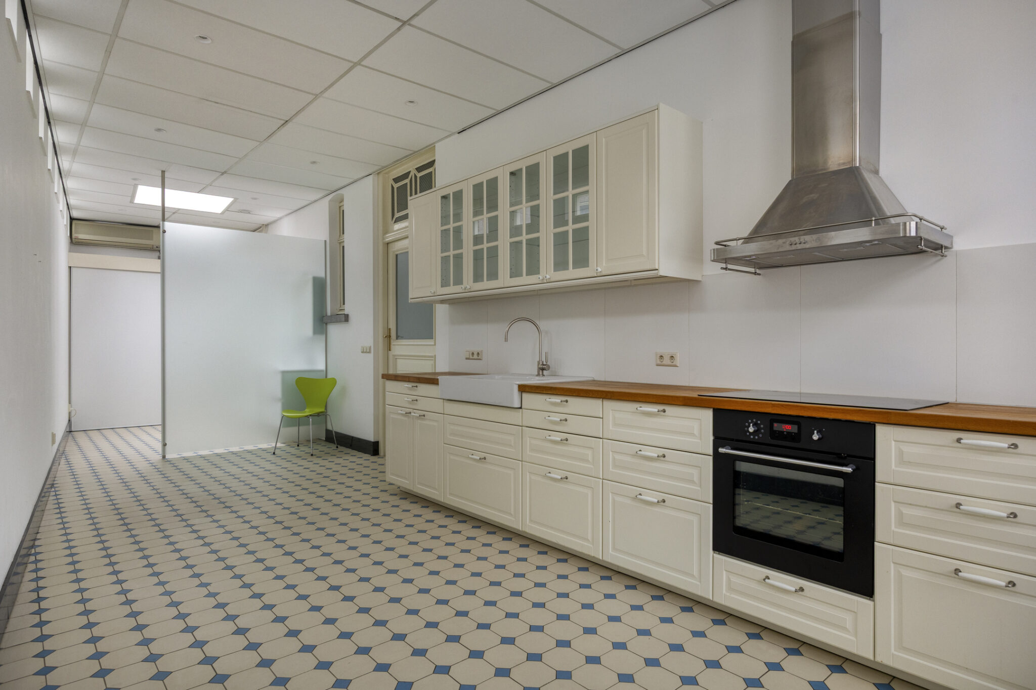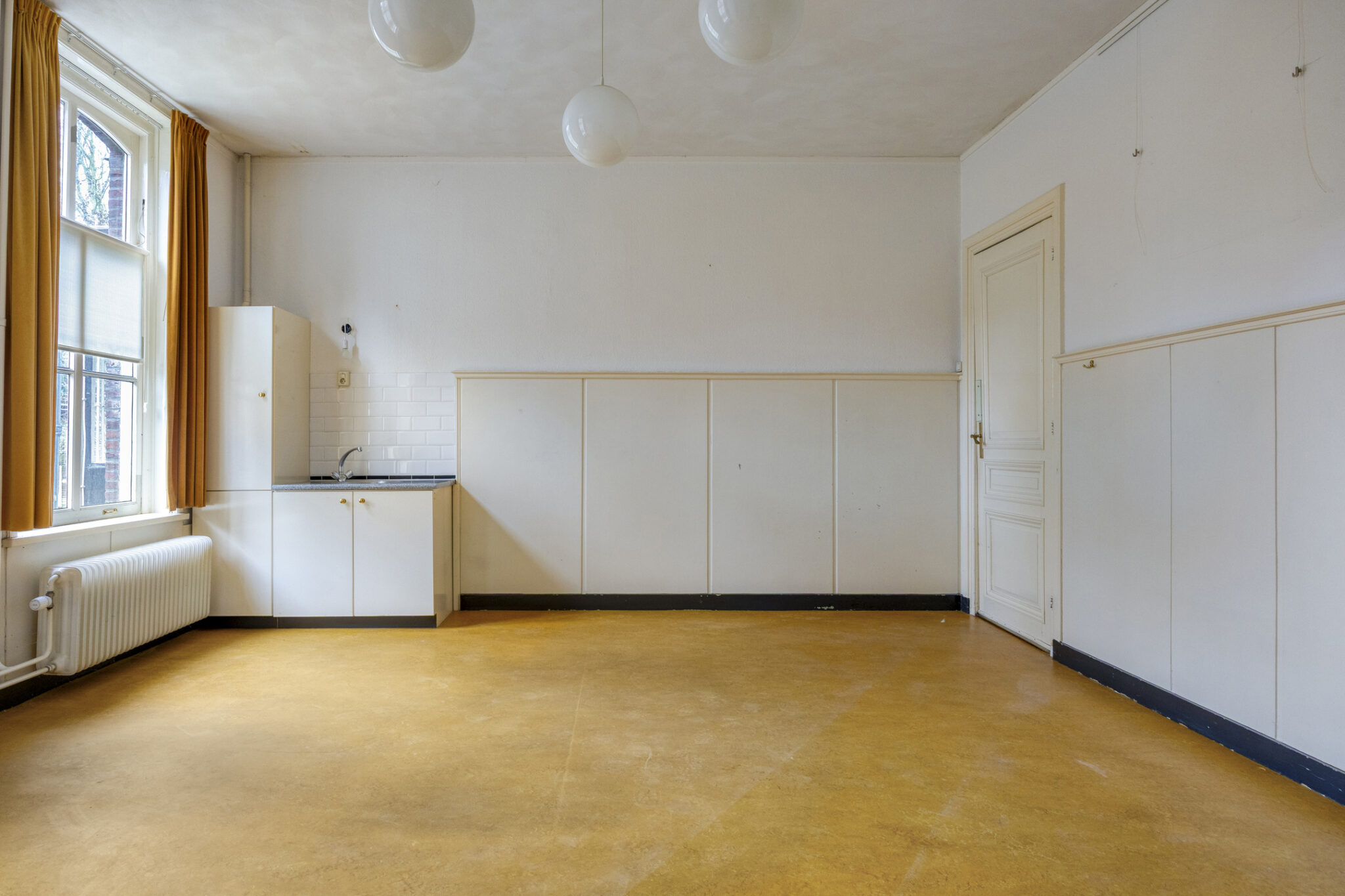 De andere kamer (voormalige spreekkamer) is aan de achterzijde gesitueerd en biedt zicht op het terras c.q. achtertuin. In de ruimte is nog een eenvoudige keukenblok aanwezig.