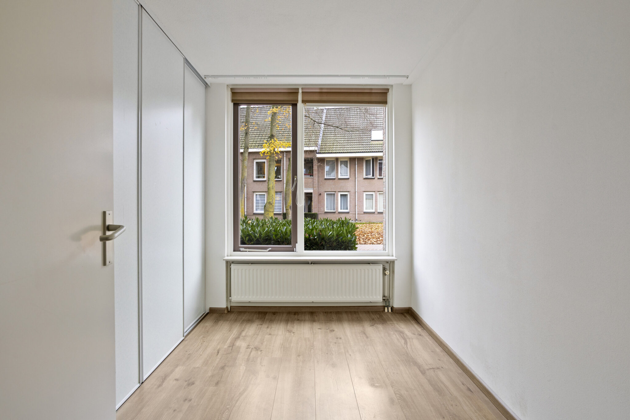 Slaapkamer 2 is gelegen aan de voorzijde. Deze nette ruimte is een ideale tweede kamer en is voorzien van een vaste kastenwand.