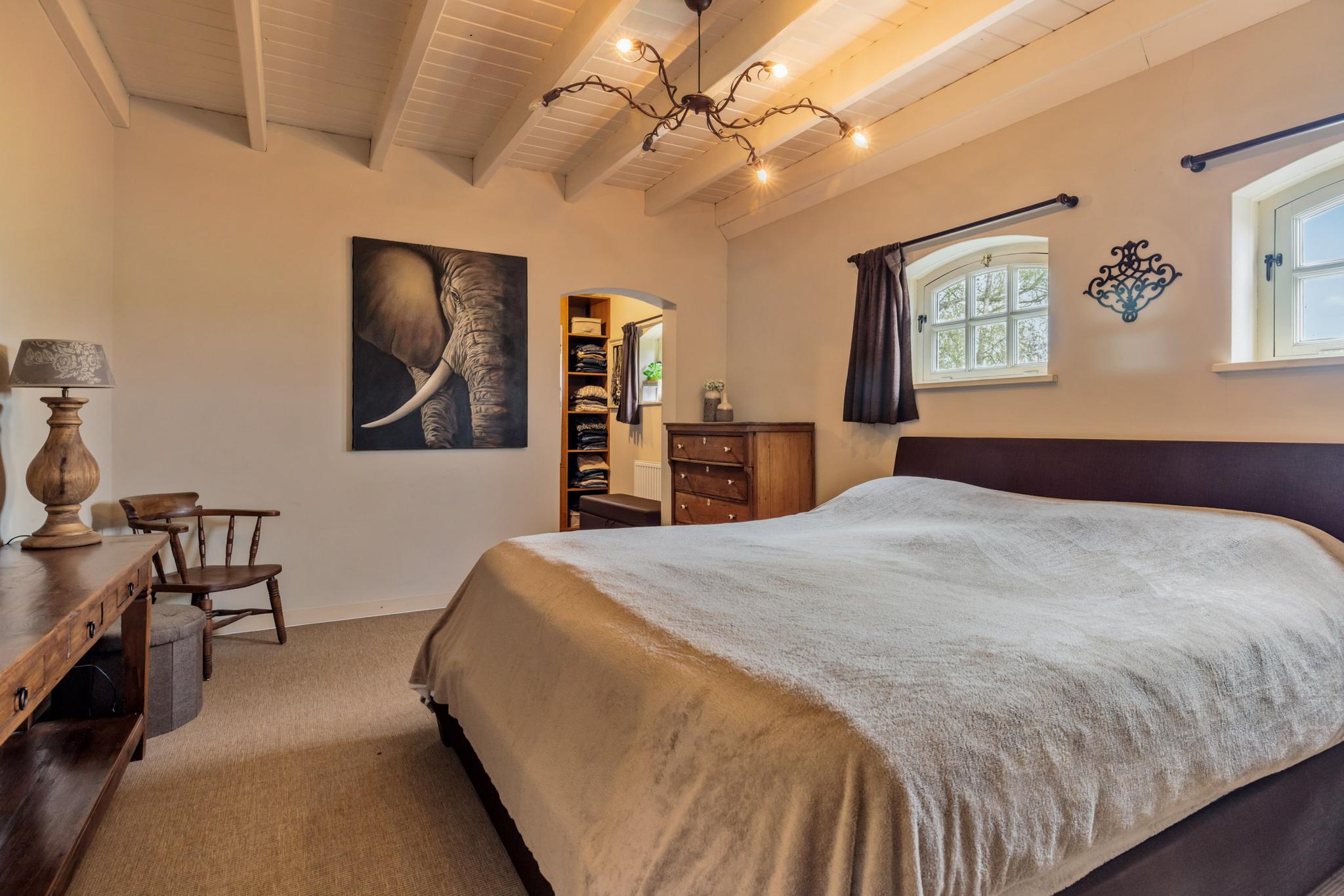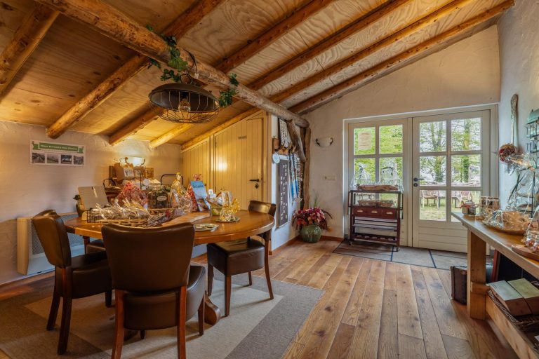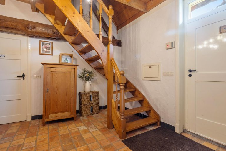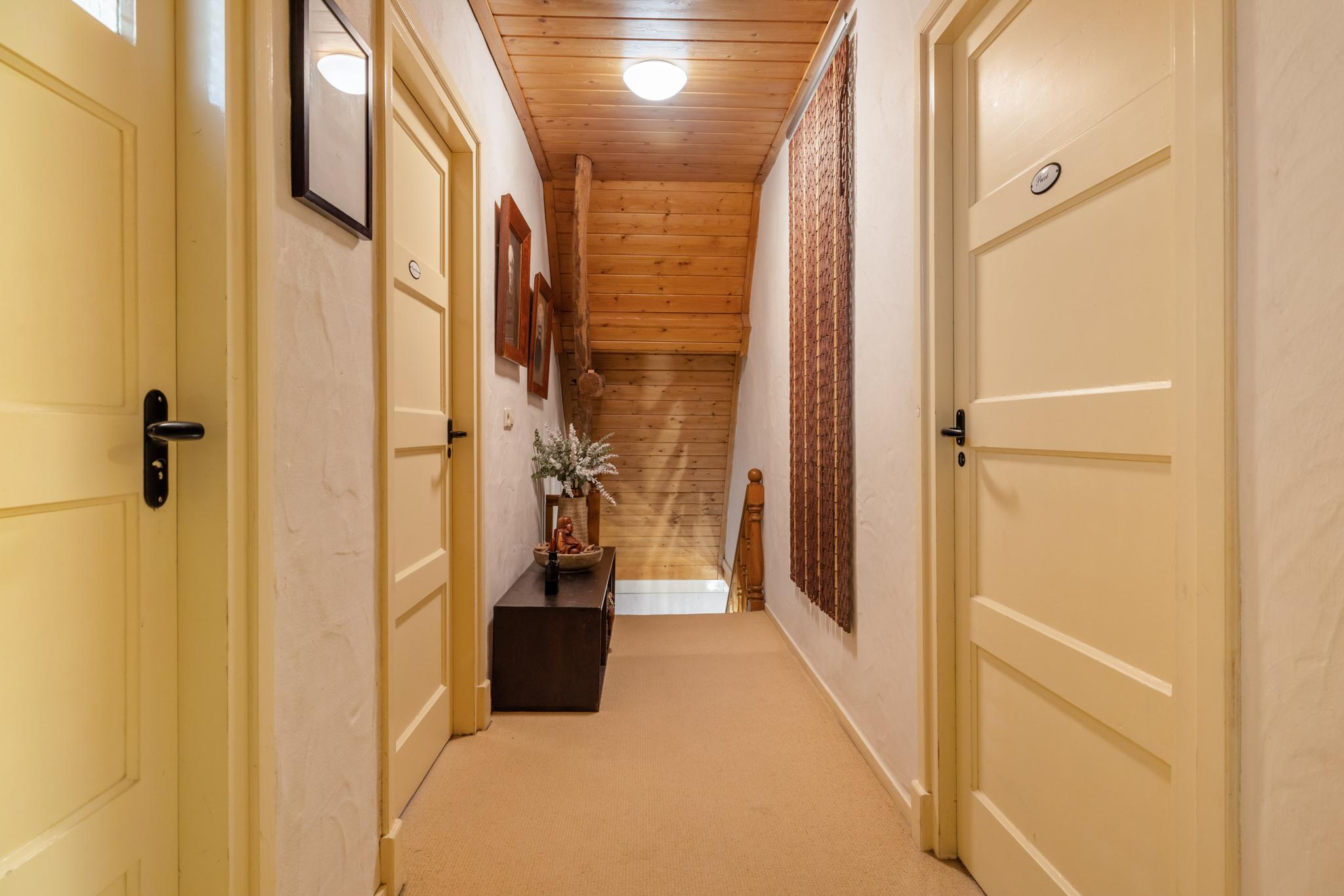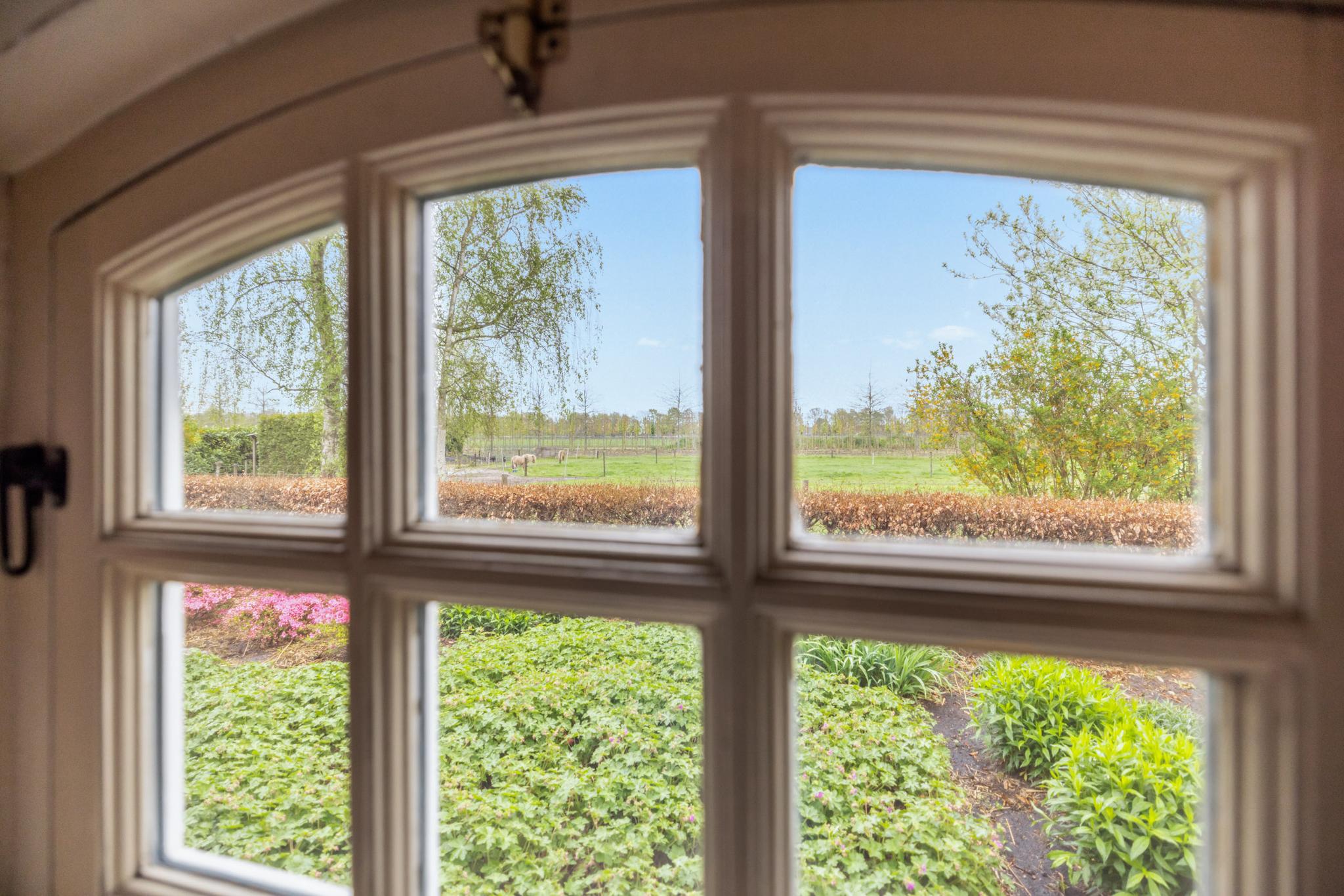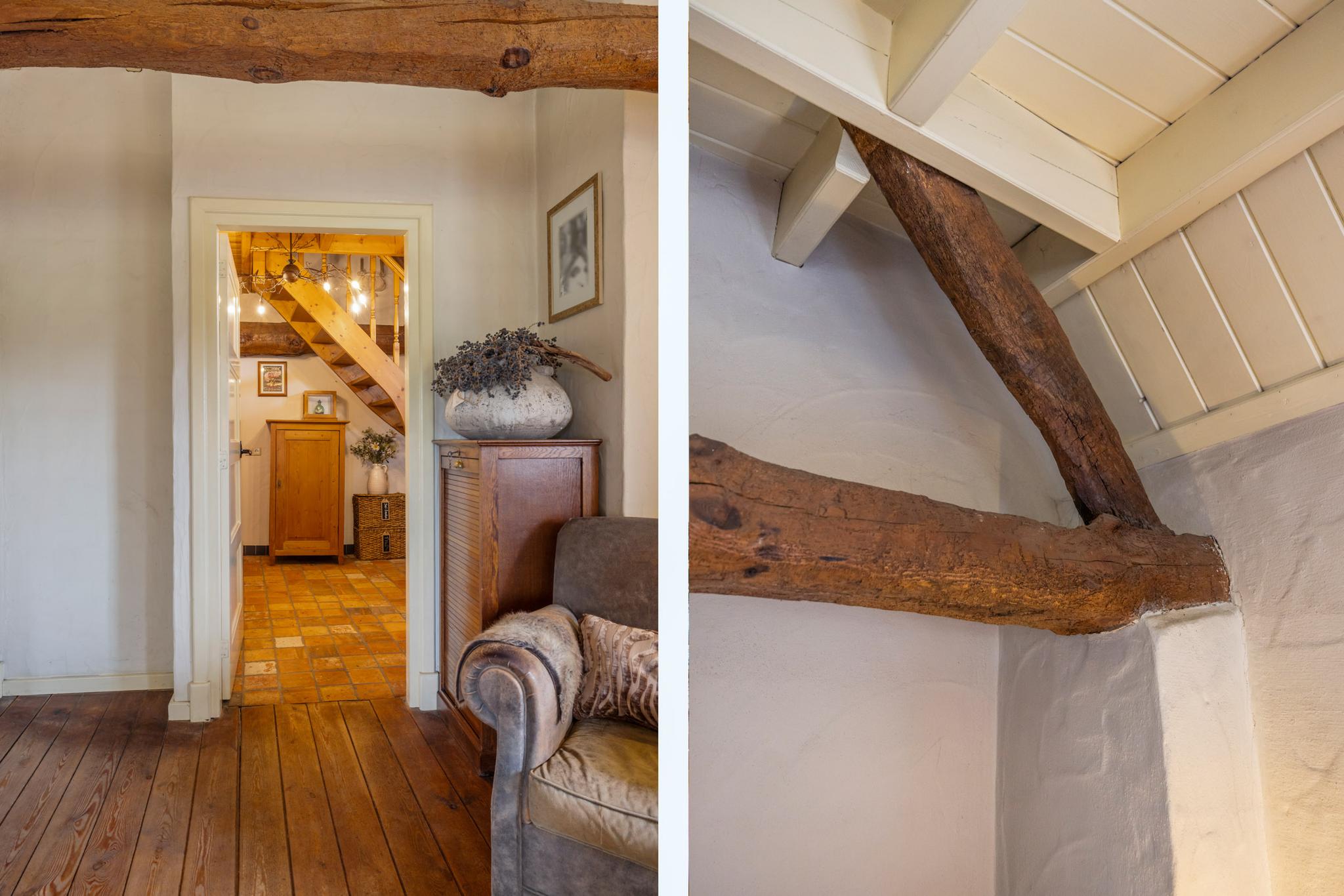 Vanuit de hal zijn verschillende vertrekken te bereiken. Wanneer je het leefgedeelte binnenstapt valt direct de royale ruimte, fijne indeling en de keurige afwerking op. De woonkamer met opkamer is sfeervol en de originele schouw en houten vloer voegen extra charme toe. Tevens heb je rondom een rustgevend uitzicht waardoor je in elk seizoen een prachtig uitzicht hebt. Wat een warm welkom.