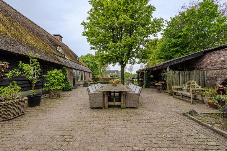 Deze idyllisch en uniek gelegen charmante rietgedekte woonboerderij laat jouw hart gegarandeerd sneller kloppen. De huidige eigenaren hebben met veel liefde het pand verbouwd en onderhouden. De karakteristieke sfeer is niet verloren gegaan en de boerderij voelt ondanks het formaat heel huiselijk aan. De fijne indeling en mooie raampartijen met prachtige vergezichten maken het plaatje compleet. Daarbij komend is het object gelegen op een perceel van maar liefst 3.100 m². De rijk beplante omliggende tuin is een groene oase van rust. Hier kun je optimaal genieten van het buitenleven, deze woning is niet voor niets een echte ‘Buitenstate’ te noemen.