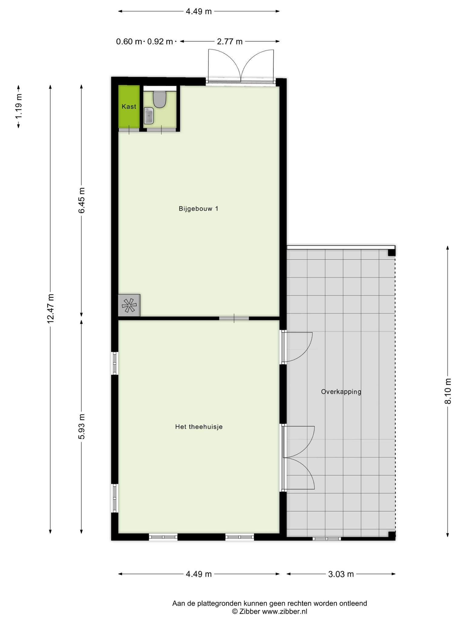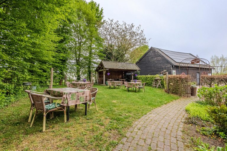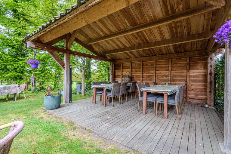 Bijgebouw 1 – het theehuisje – kan voor diverse doeleinden worden ingezet. Denk hierbij bijvoorbeeld aan een mantelzorgwoning, waardoor het perfect is voor generaties die samen willen wonen, maar toch hun eigen privacy willen behouden. De overkapping is een fijne plek om buiten te genieten, ongeacht het seizoen.