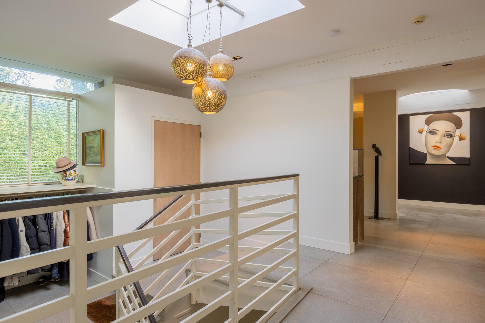 De overloop biedt verder toegang tot meerdere bergruimten, de technische ruimte en de ruime inpandige garage.