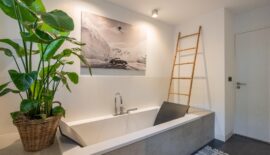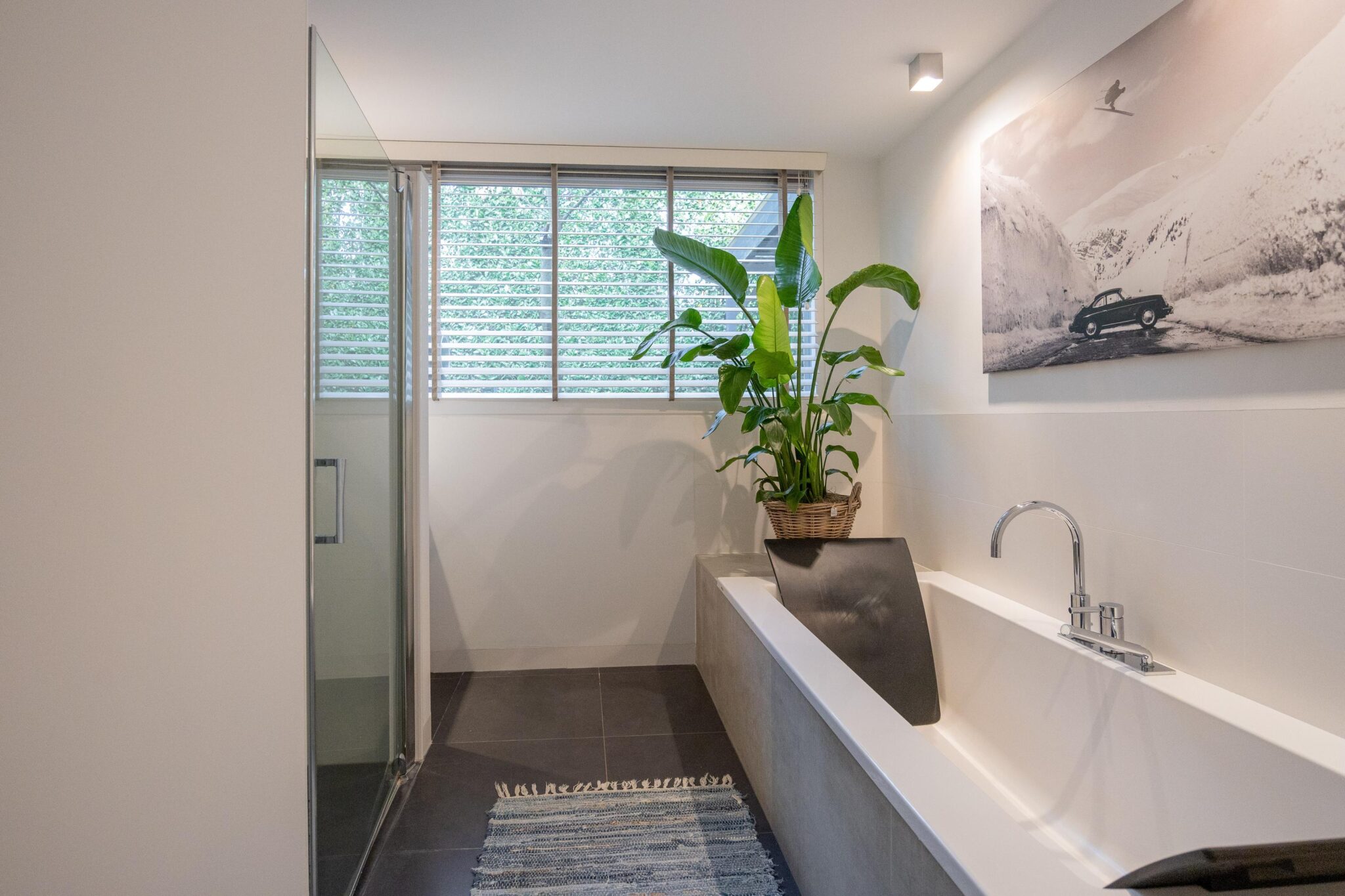 De tweede badkamer is uitgerust met een ligbad, douche en wastafel. Op de overloop bevindt zich een separate toiletruimte.