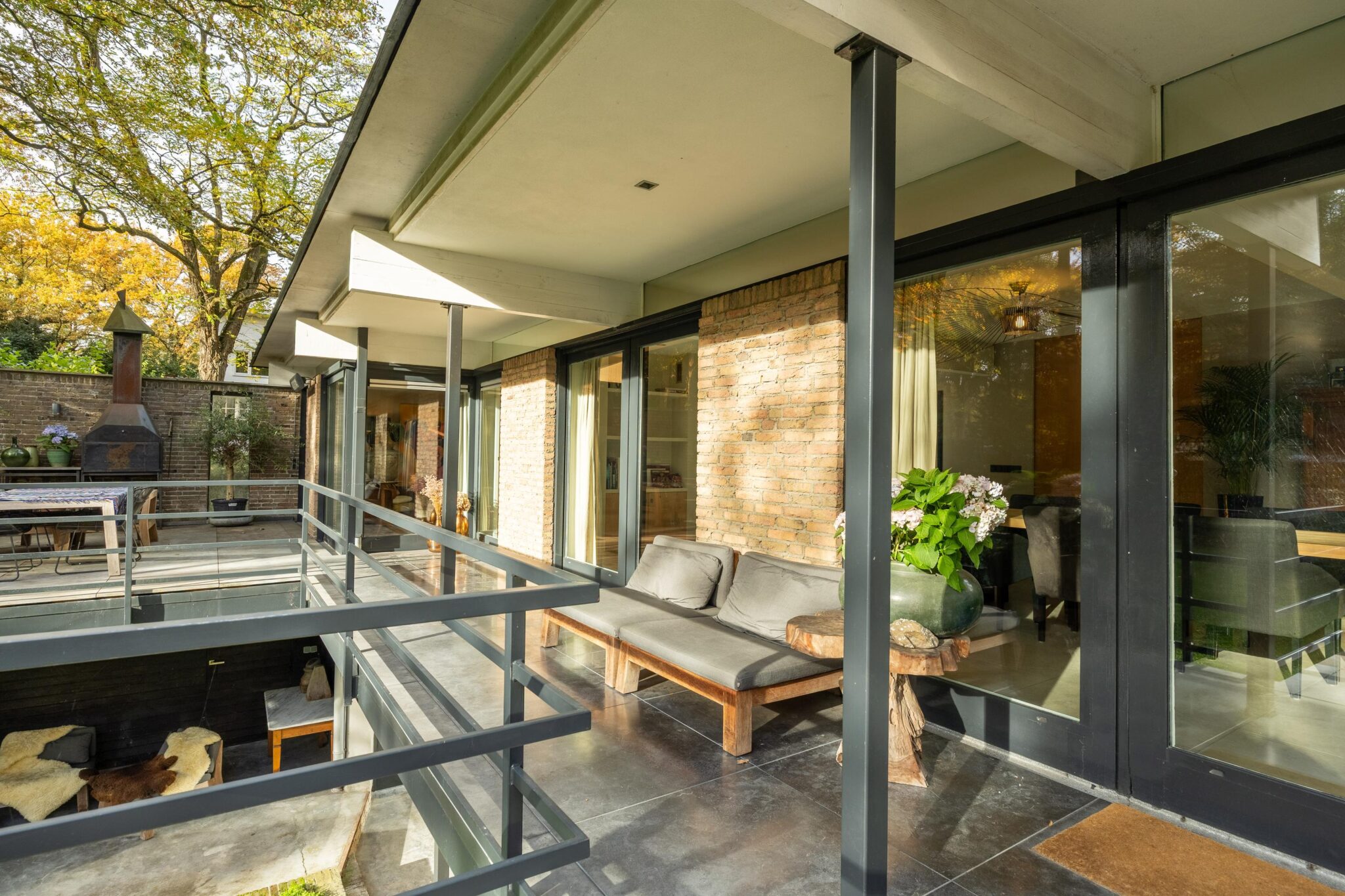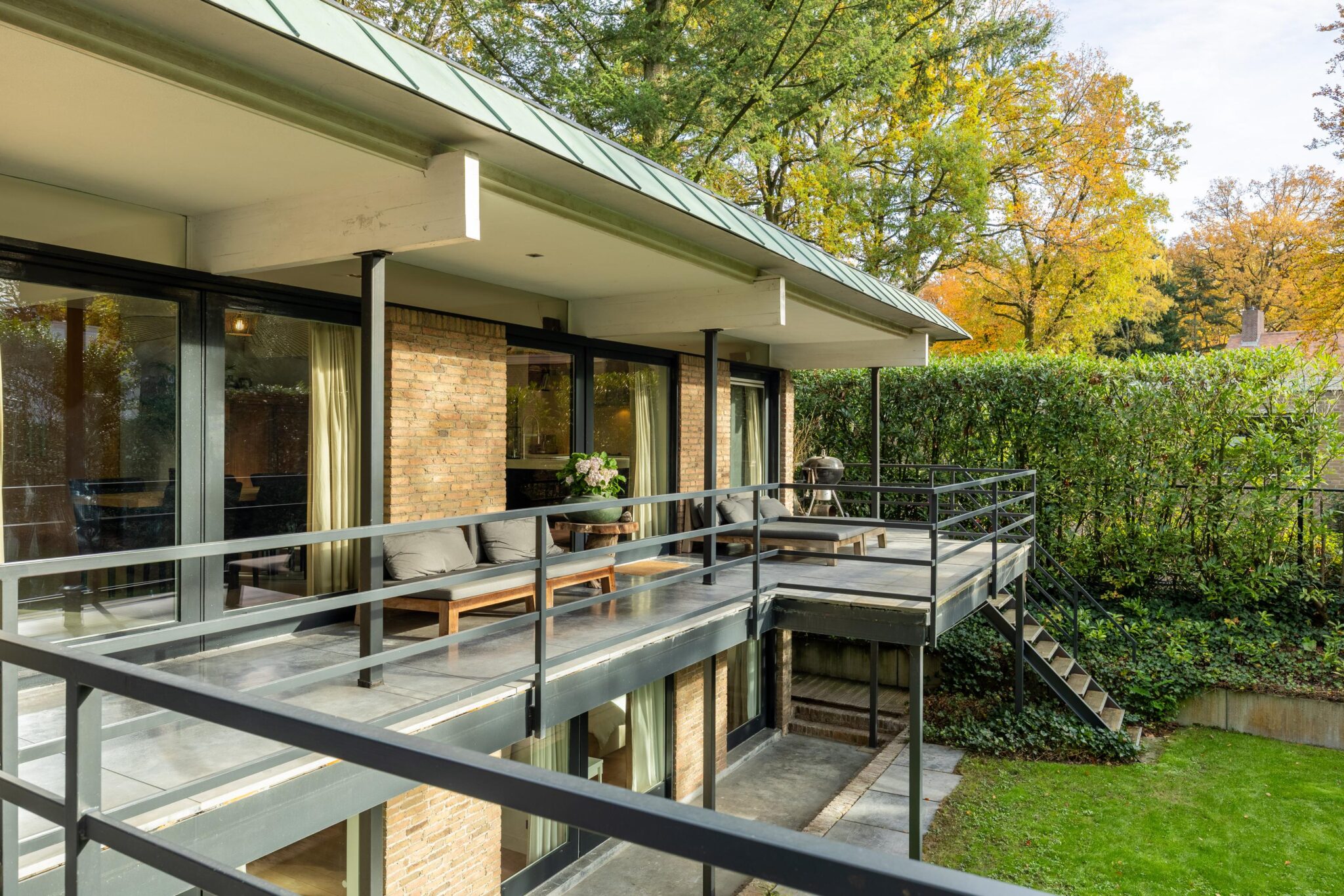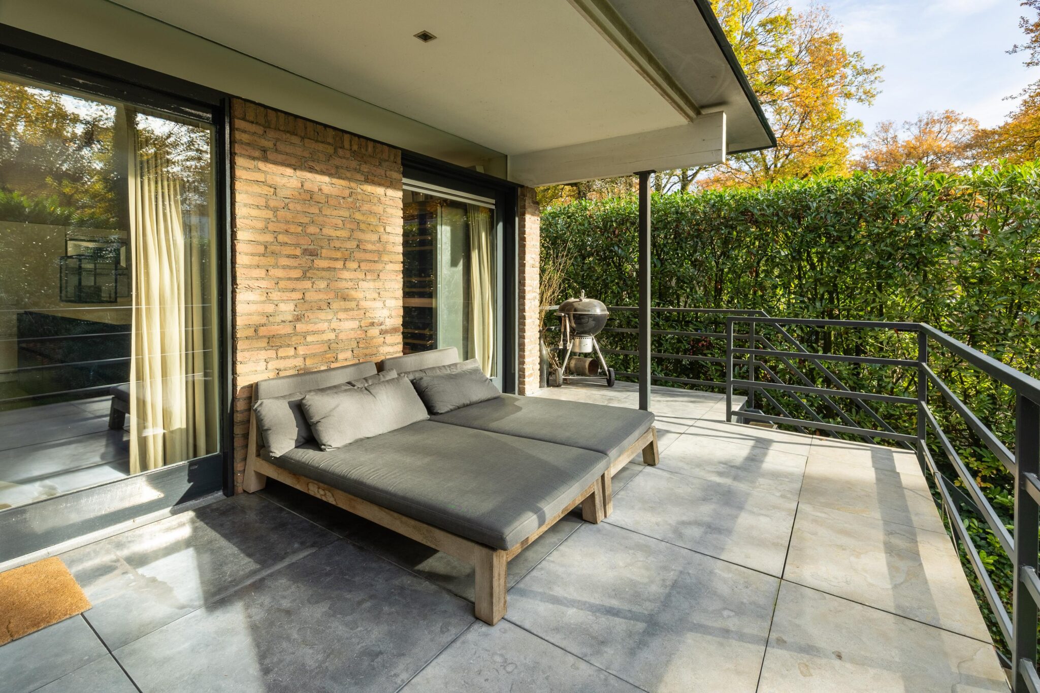 De achtertuin is met zorg ontworpen en volgt de natuurlijke hoogteverschillen van het perceel. Hierdoor ontstaat een speelse, moderne uitstraling. Over de volledige breedte van de woning ligt een groot balkon met diverse zitplekken en een terras, ideaal om de hele dag van de zon te kunnen genieten.