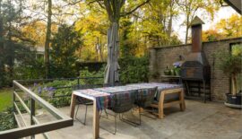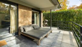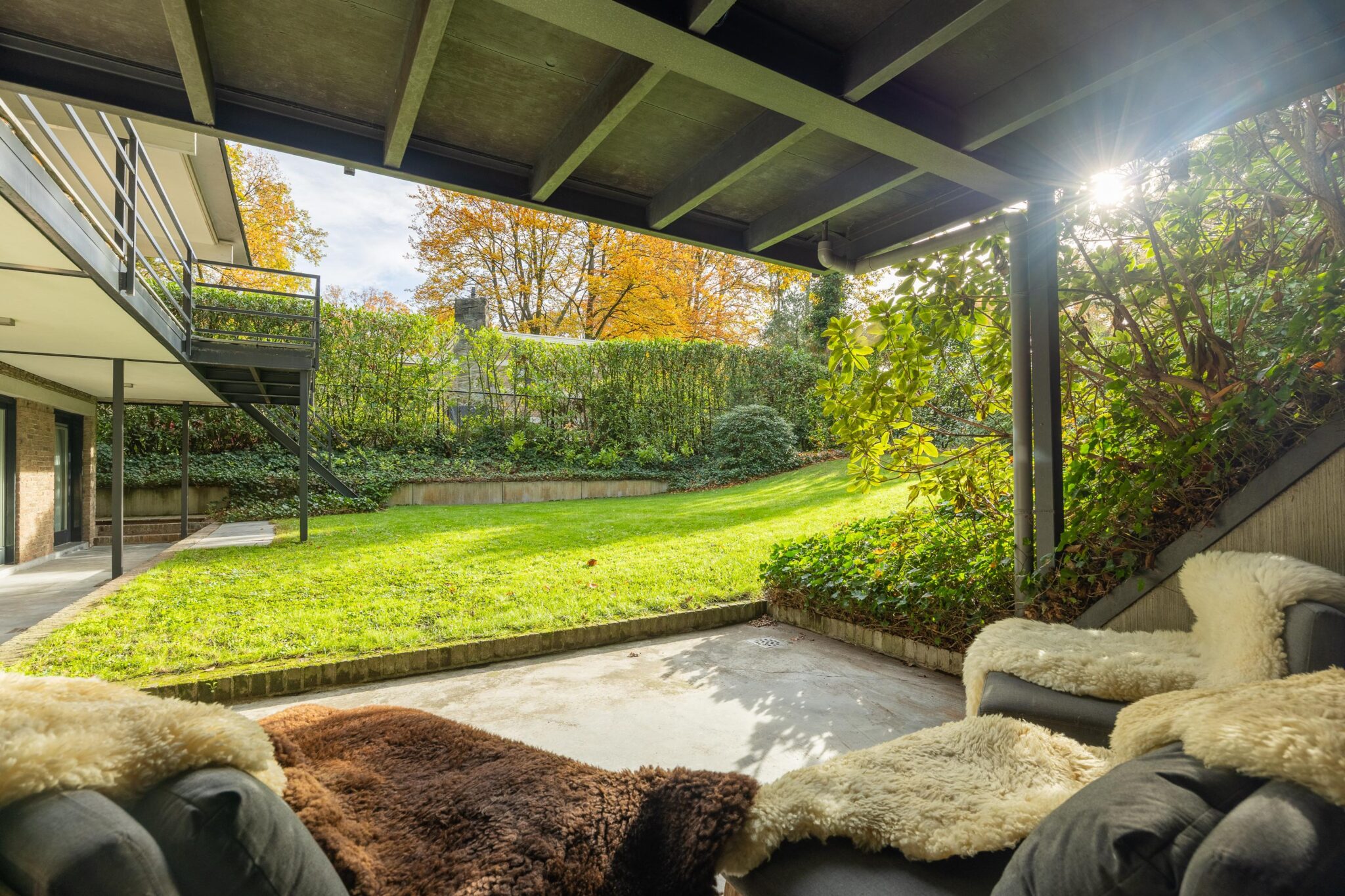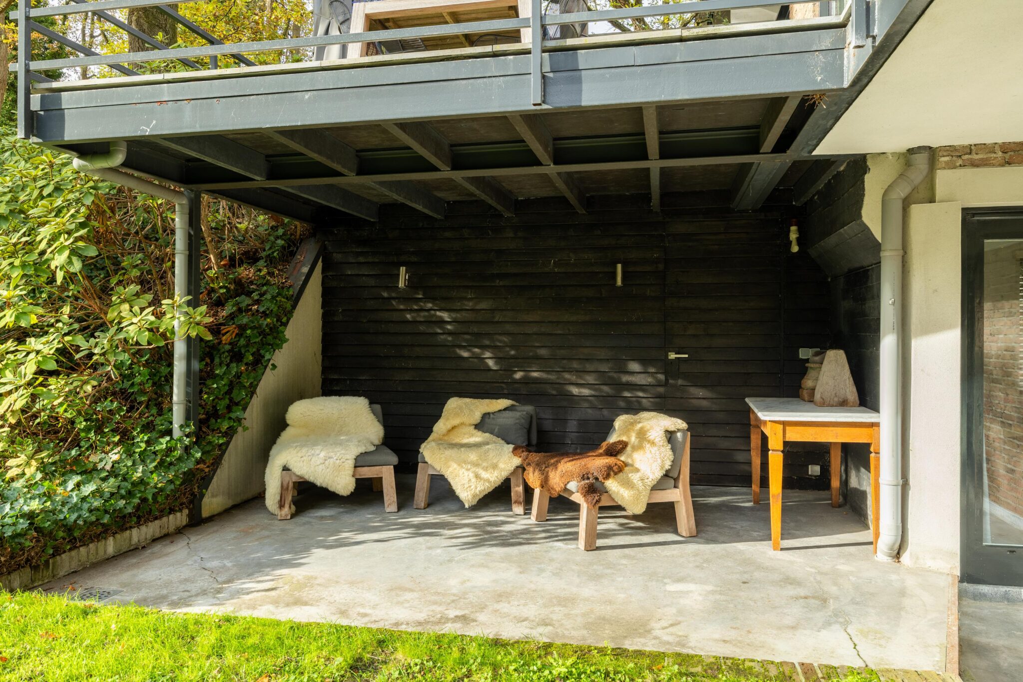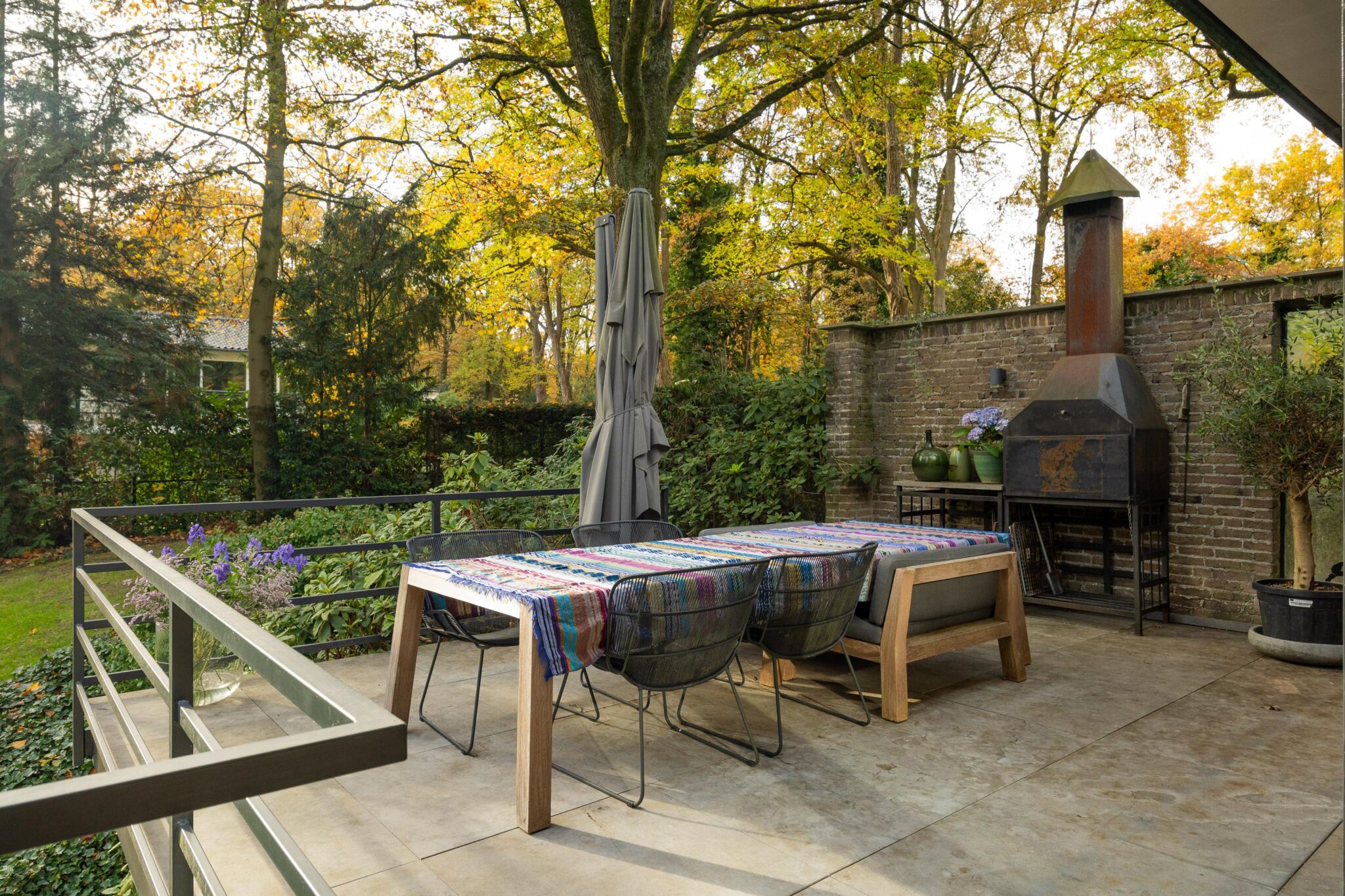 De achtertuin is met zorg ontworpen en volgt de natuurlijke hoogteverschillen van het perceel. Hierdoor ontstaat een speelse, moderne uitstraling. Over de volledige breedte van de woning ligt een groot balkon met diverse zitplekken en een terras, ideaal om de hele dag van de zon te kunnen genieten.