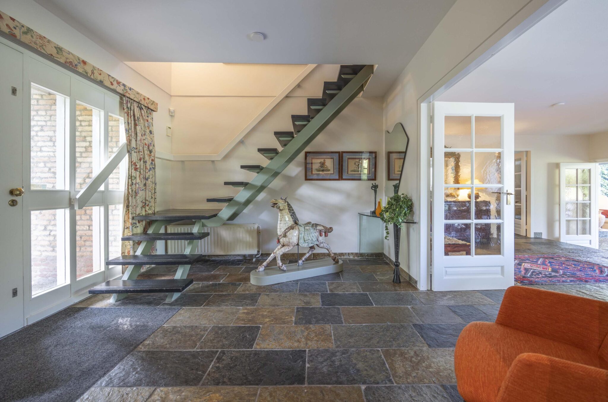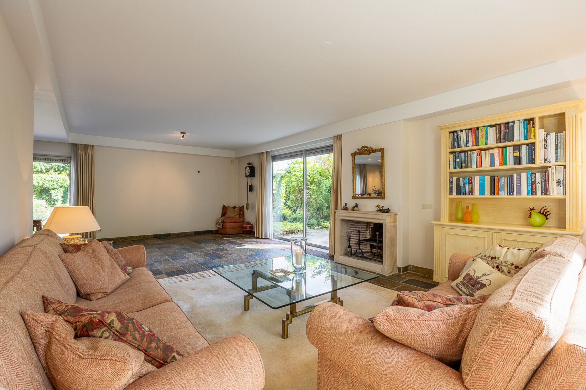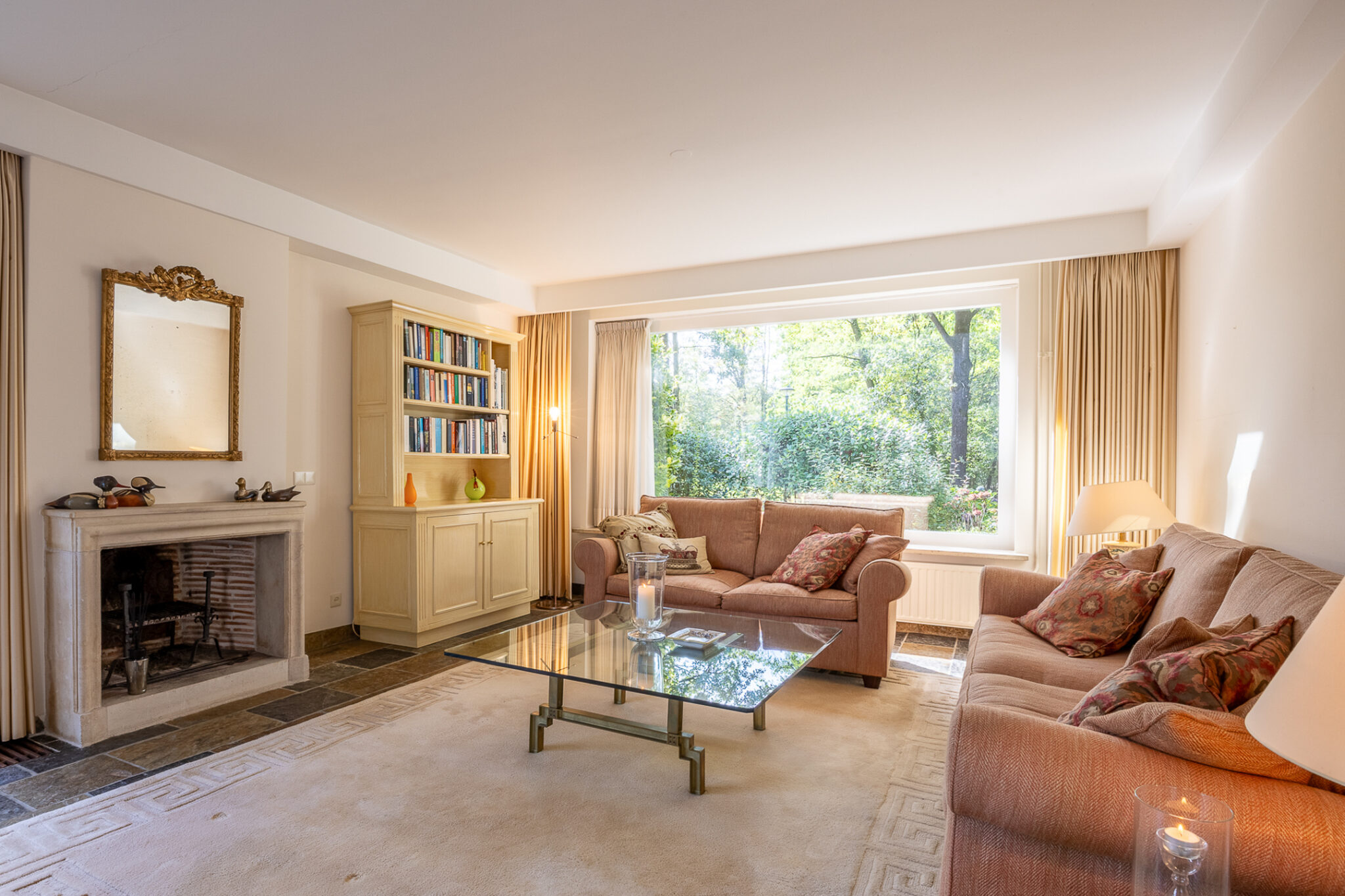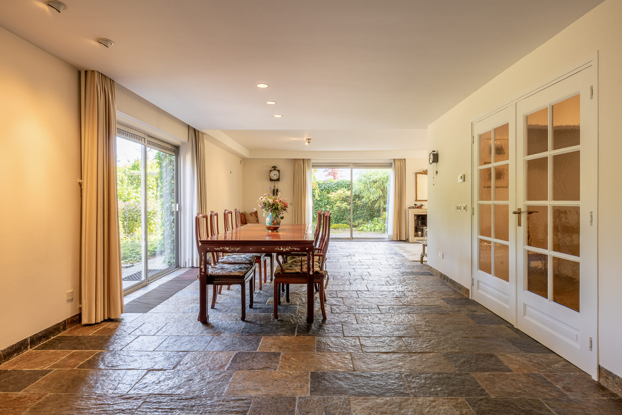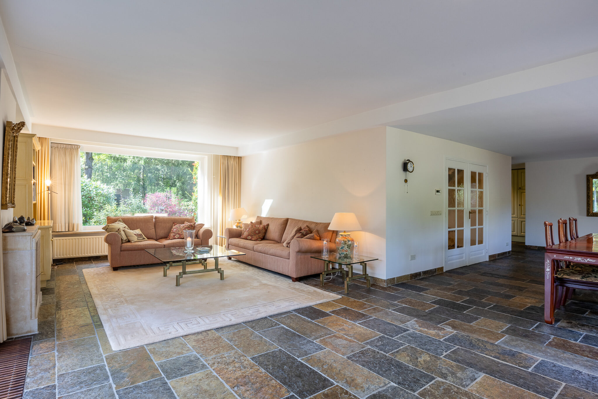 U komt binnen in een ruime hal met garderobe, gastentoilet en trapopgang. Via openslaande deuren betreedt u de grote lichte, L-vormige leefruimte met zicht op en directe toegang tot de tuin en en zijn terassen. Het ruime eet- en comfortabele zitgedeelte met sfeervolle openhaard bieden de ideale plek om samen te komen met familie en vrienden.