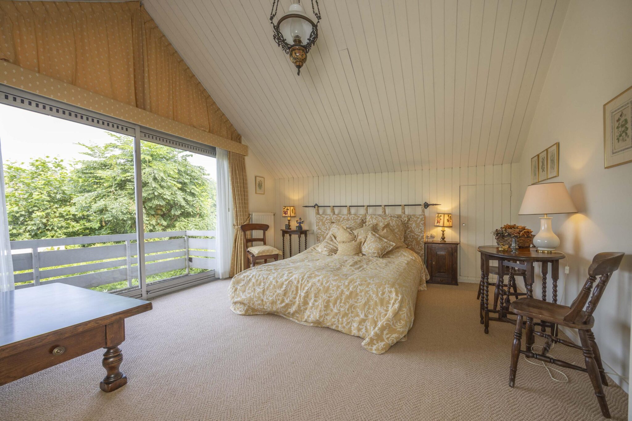 Bereikbaar via de trap in het tussenportaal, biedt deze vleugel ruimte aan een zeer ruime comfortabele en lichte slaapkamer met daarnaast een separate badkamer met ligbad, toilet, bidet en dubbele wastafel.
