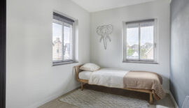 De hoofdslaapkamer is gelegen aan de achterzijde en heeft een vaste inloopkast ensuite.