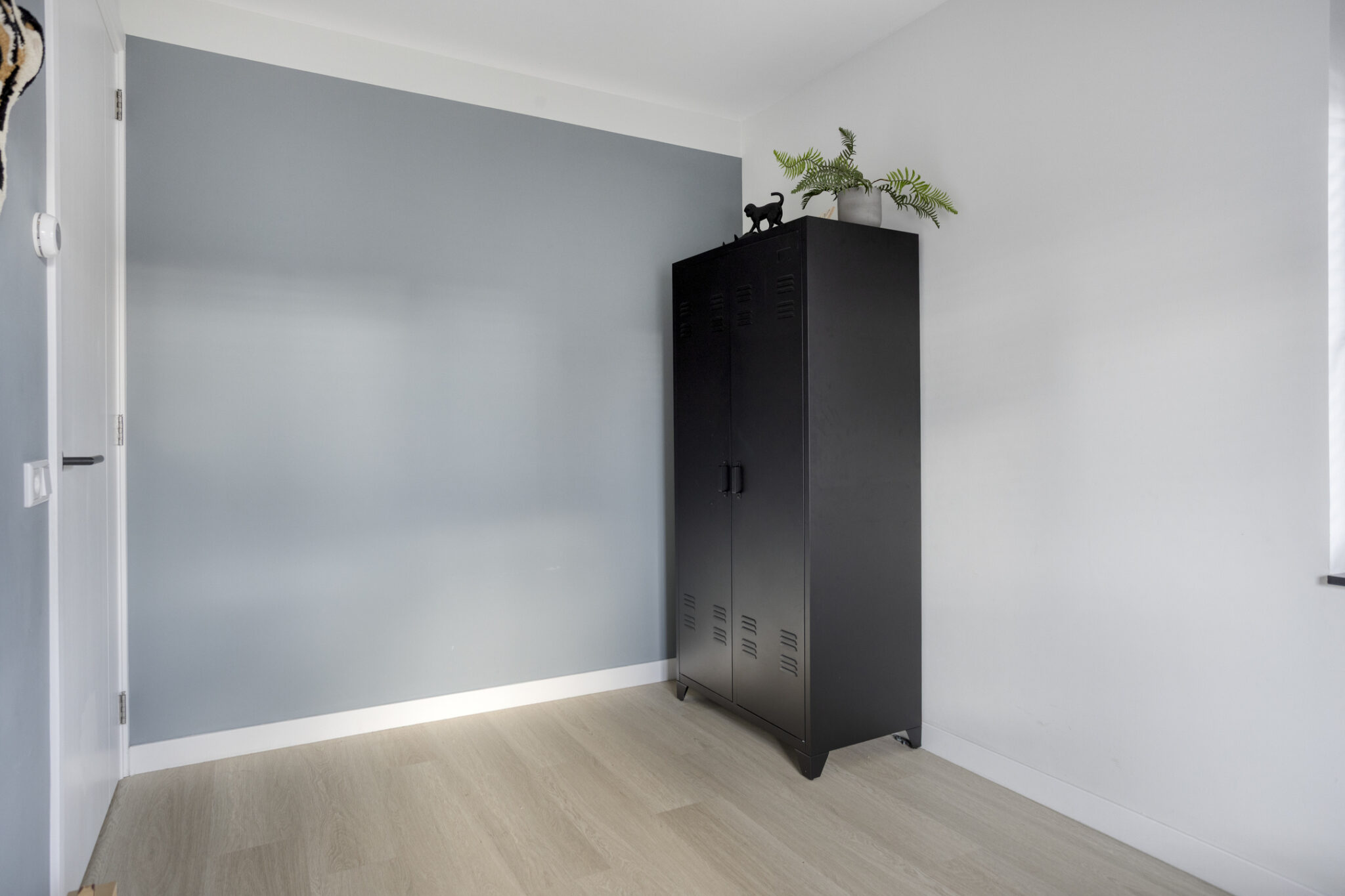 De laatste ruimte in de woning is de technische ruimte. Hier bevinden zich de aansluitingen voor de wasmachine en droger en de omvormer voor de zonnepanelen. Tevens hangt hier de WTW-installatie.