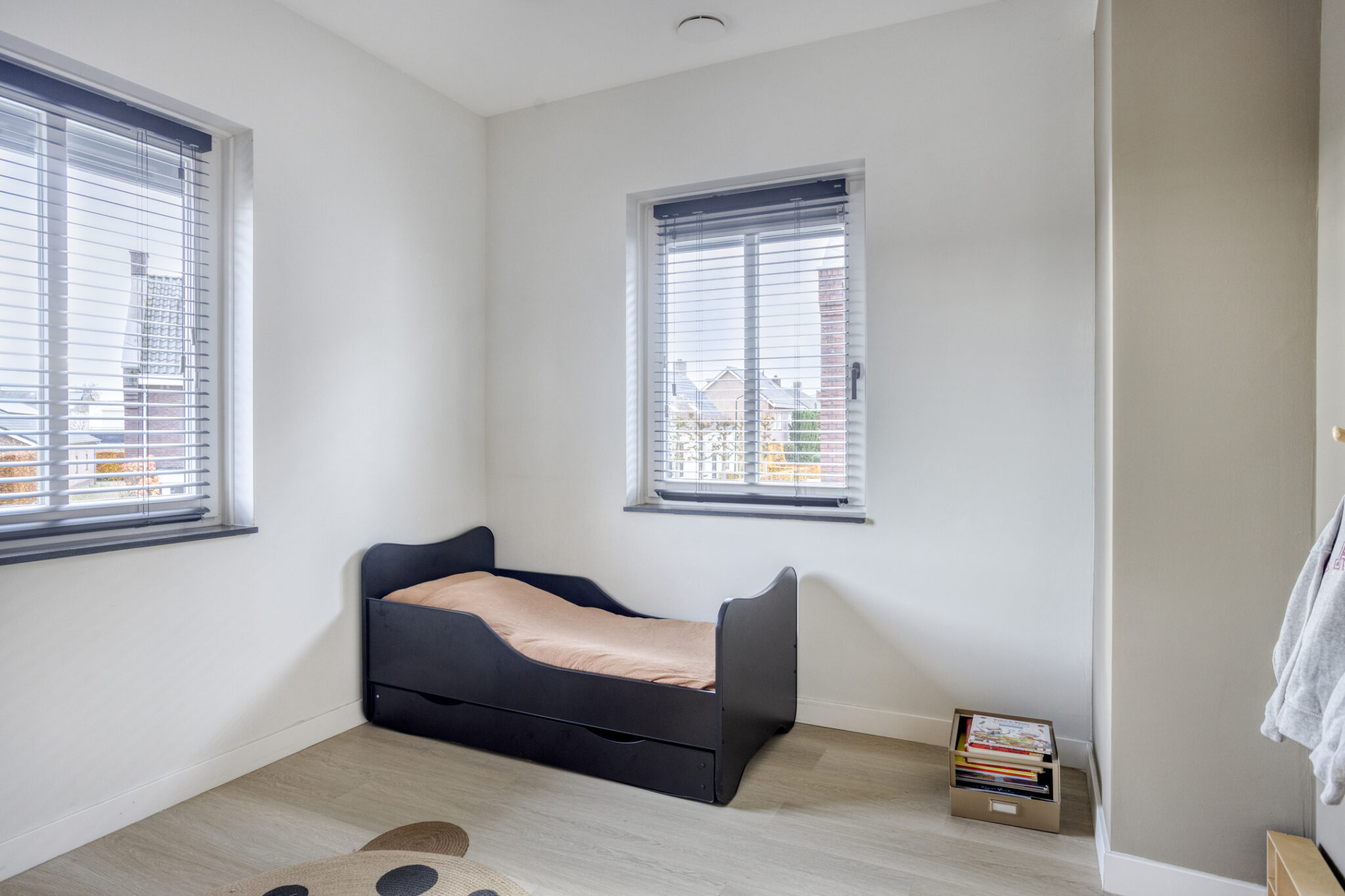 Alle slaapkamers zijn voorzien van een pvc-vloer in houtmotief en rolluiken.