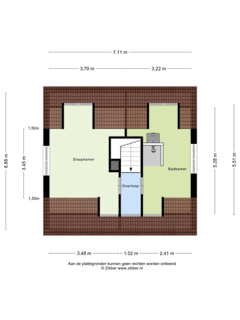 Op de tweede verdieping bevindt zich een tweede badkamer met douche, wastafelmeubel en dakkapel, evenals een derde slaapkamer. Ook deze slaapkamer beschikt over een dakkapel, wat zorgt voor extra lichtinval en een ruimtelijk gevoel.