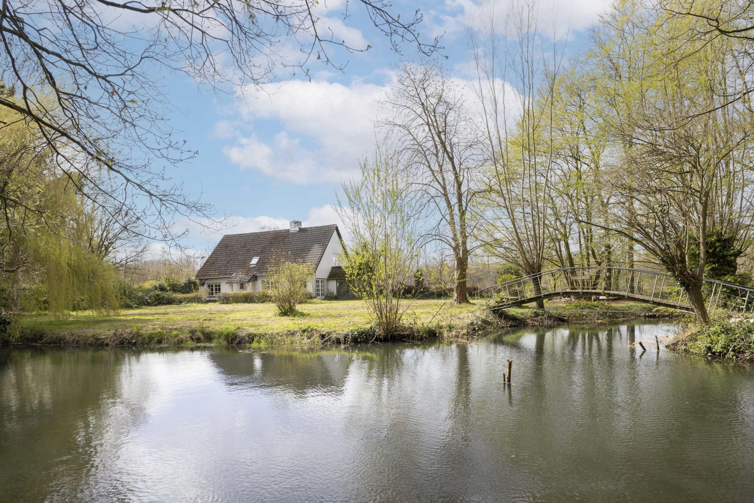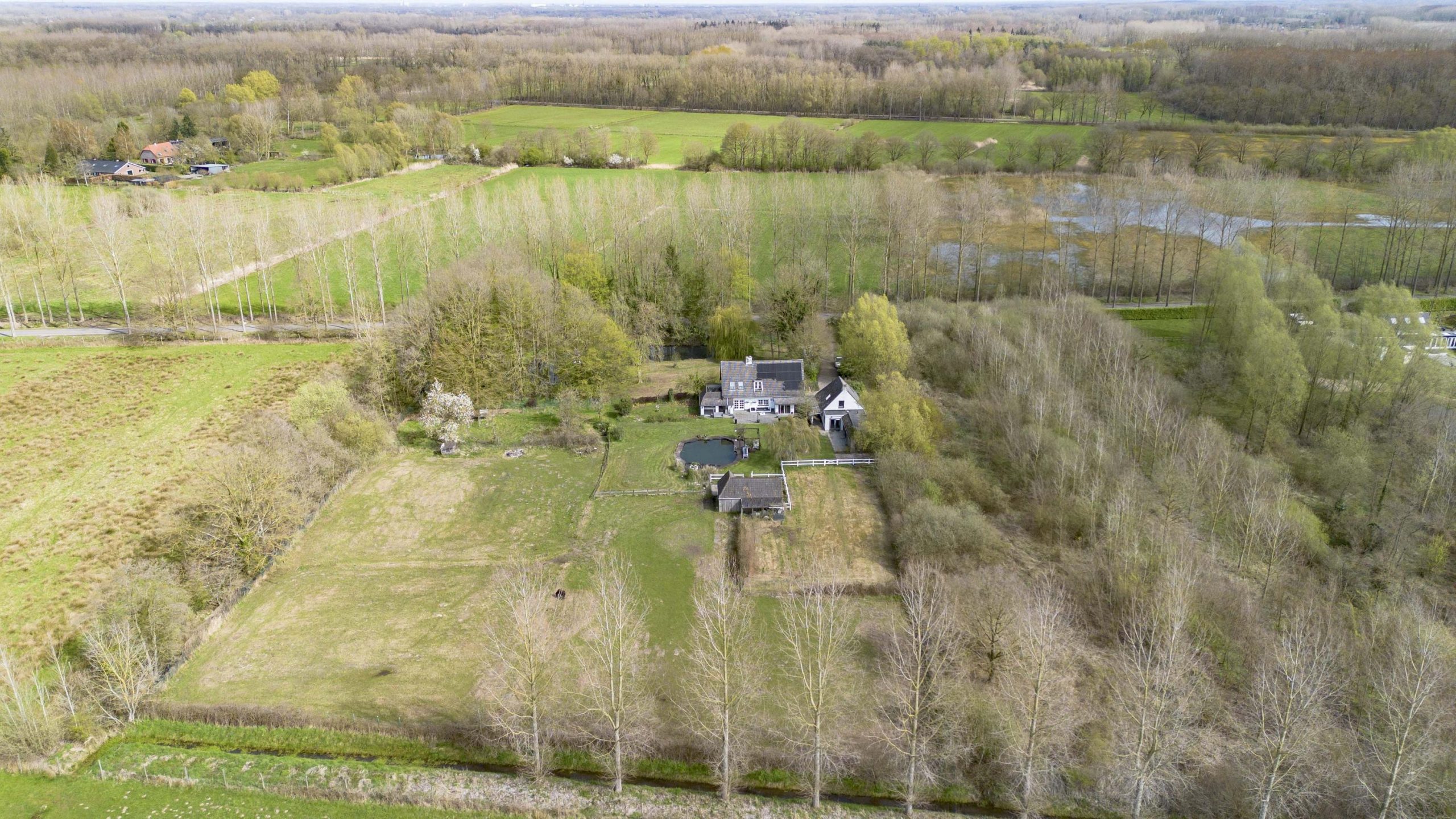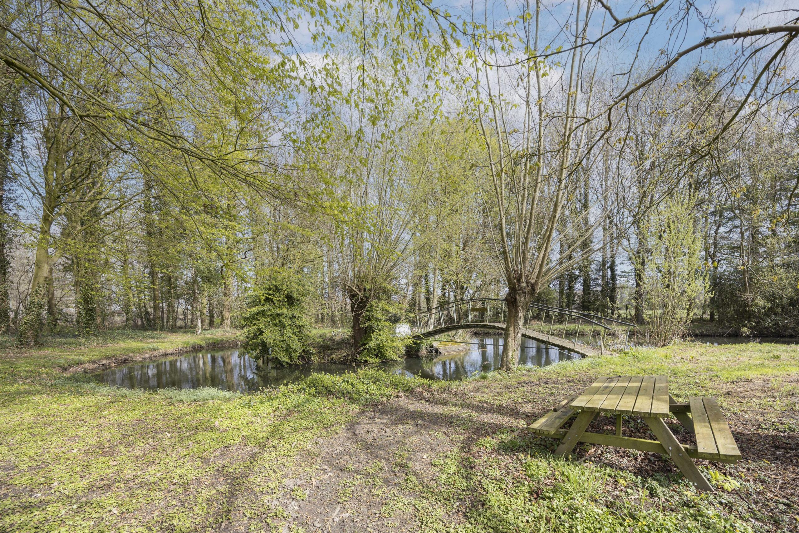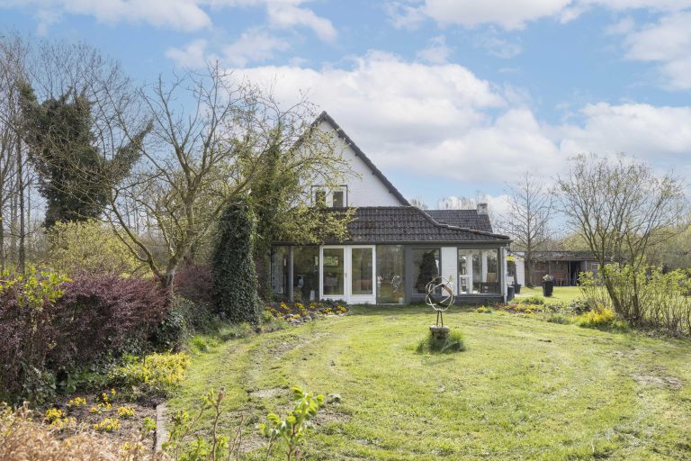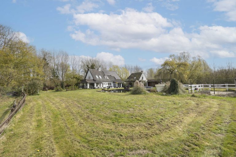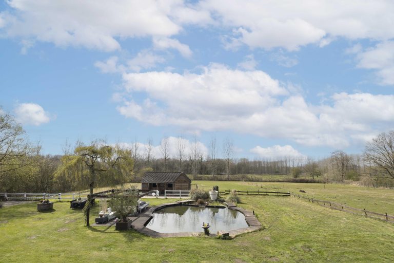Het buitenleven vormt een essentieel onderdeel bij deze woning. Aan de voorzijde ligt een bosrijk perceel met een vijver, via een charmante brug is een klein eiland in het midden bereikbaar. Deze vijver geeft direct een gevoel van rust en privacy bij aankomst. Aan de achterzijde is een zeer royaal perceel te vinden met een vrije uitkijk over de achtergelegen bossen en landerijen.