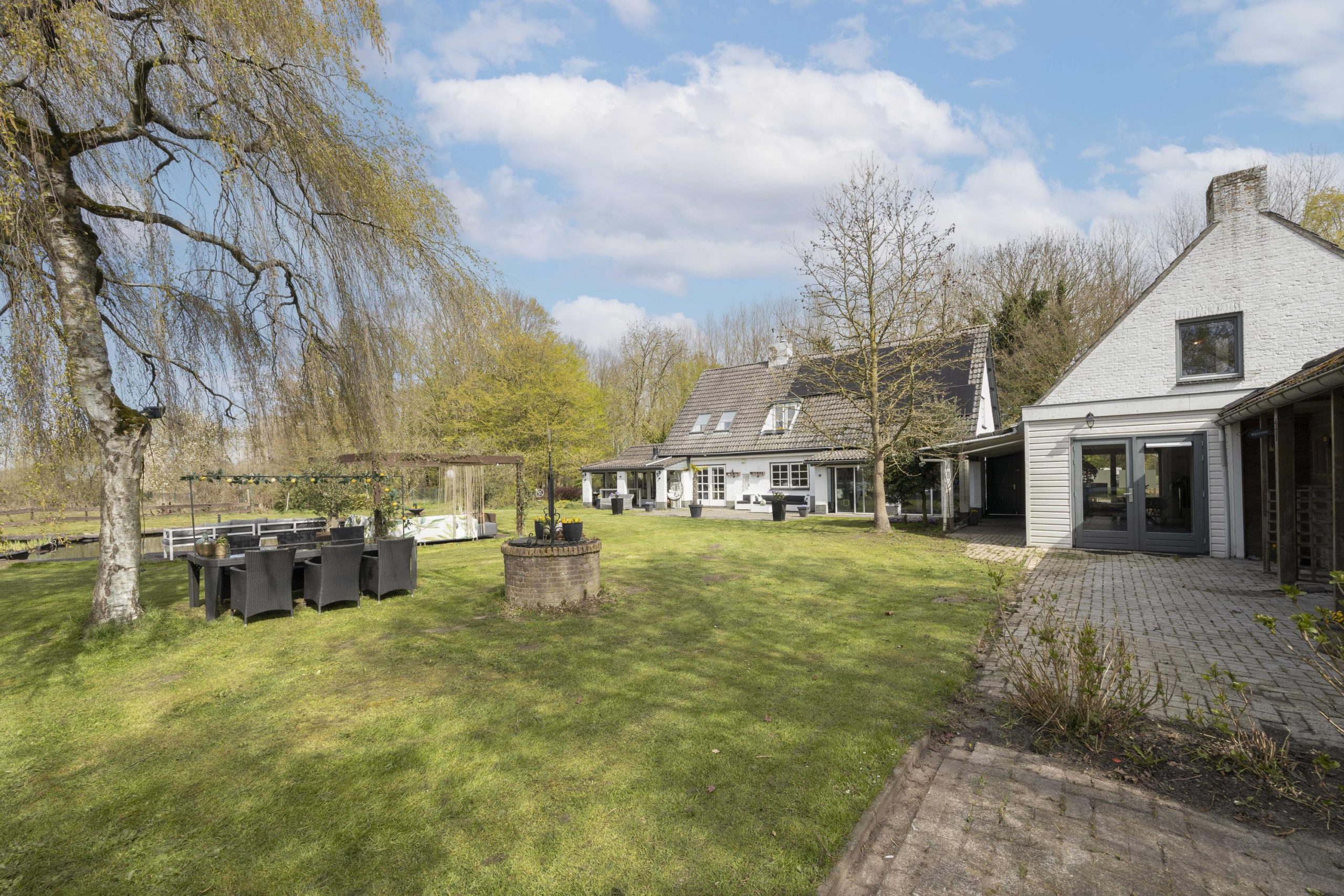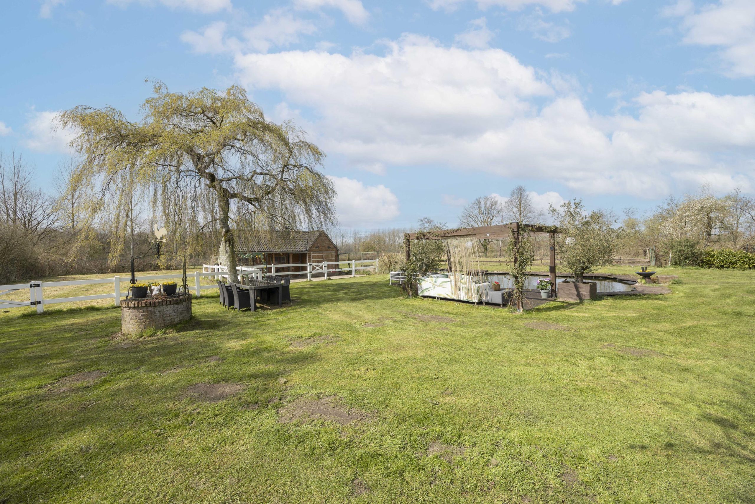 De tuin beschikt verder over een karakteristieke wensput, veel gazon en meerdere prachtige bomen wat bijdraagt aan de charme en het karakter van het geheel.