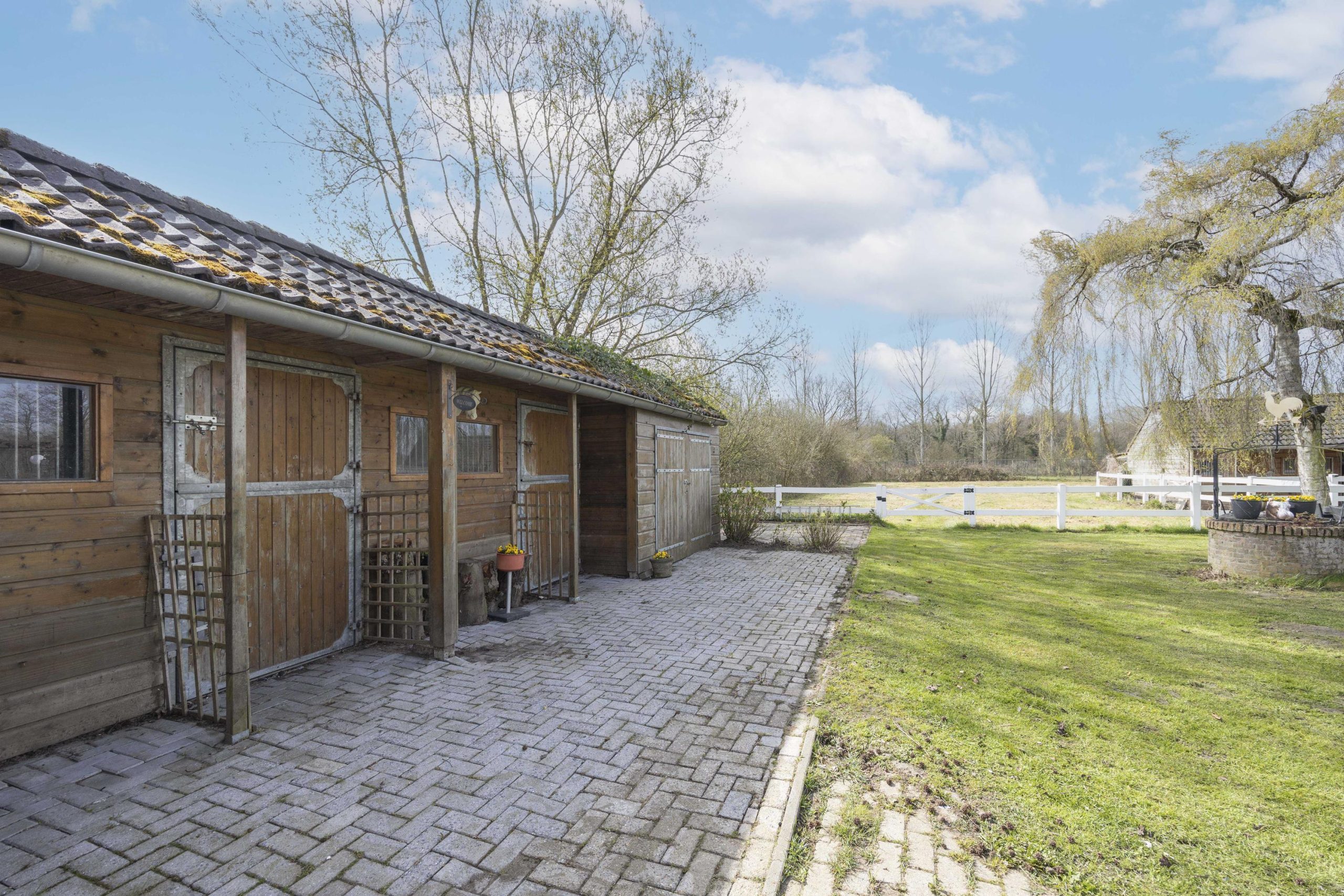 Achter het bijgebouw bevindt zich een houten berging met twee paardenstallen en een berging. In één van de stallen is een grondwaterpomp aanwezig voor de fontein in de vijver aan de voorzijde van het perceel.