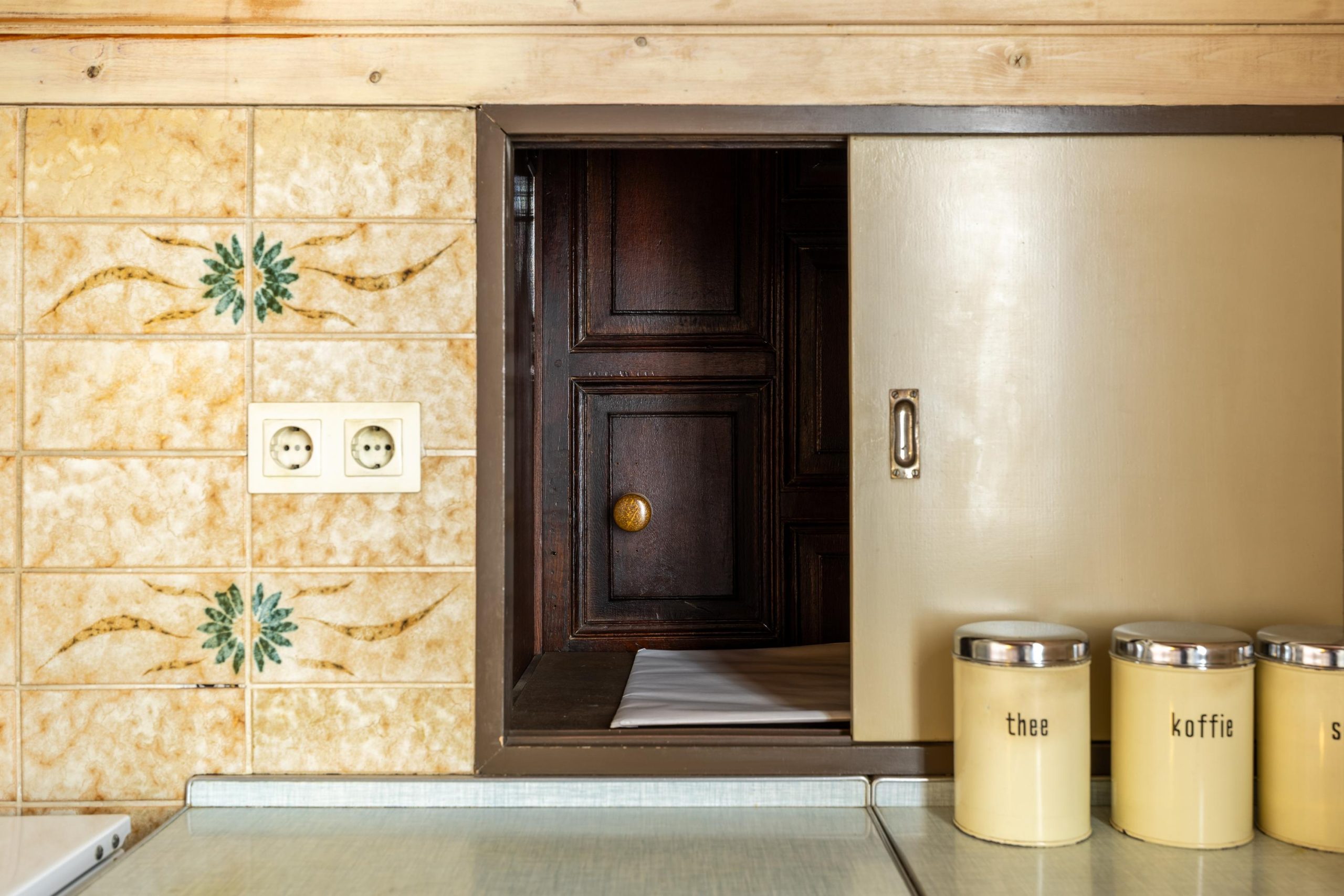 De keuken is gelegen aan de achterzijde van de woning en beschikt over toegang tot de ondergelegen (wijn)kelder en de bijkeuken.