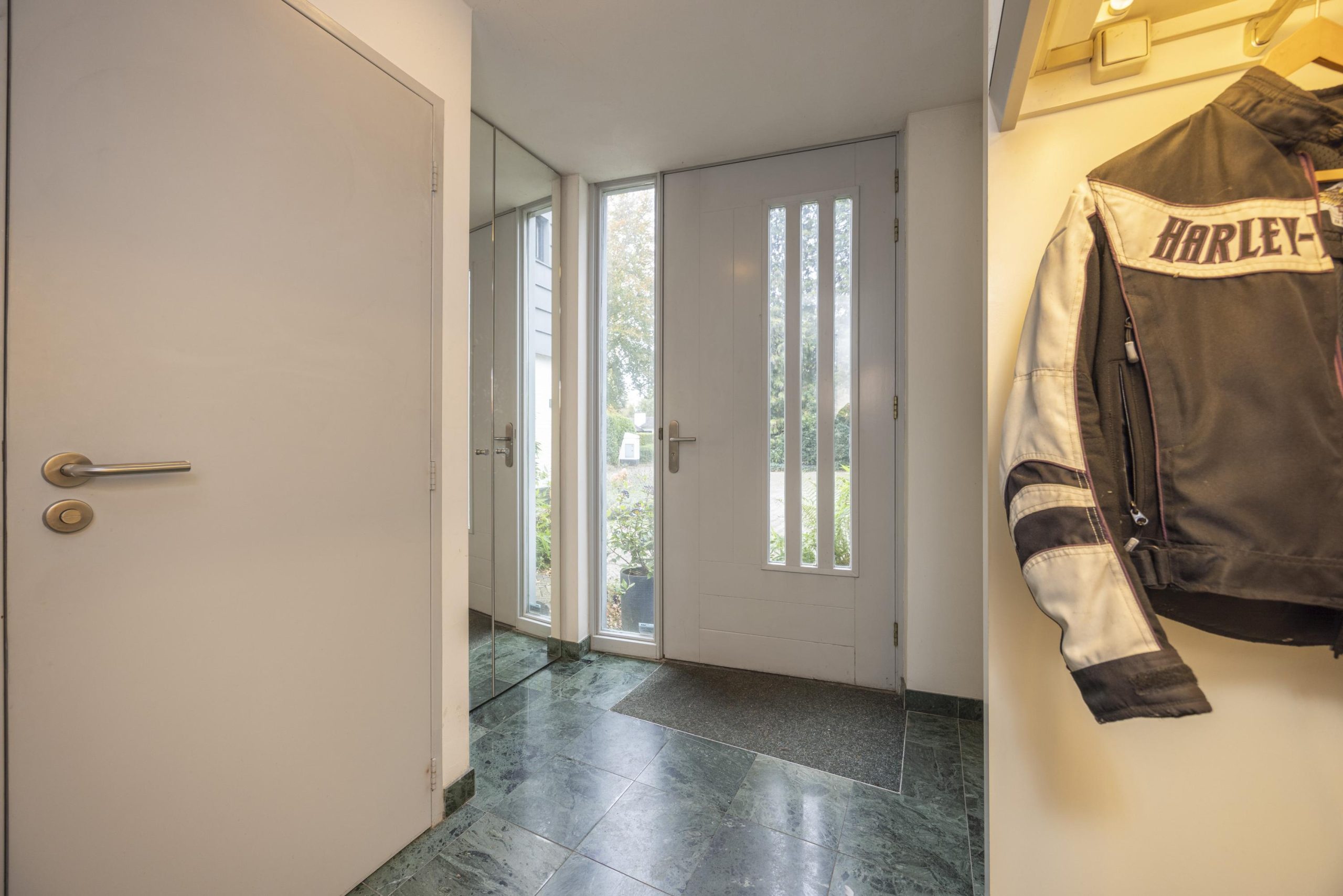 Vanuit de keuken en bijkeukenruimte is een zij-entree naar de voorzijde van de woning en de oprit. Bij de entree is een garderobe en een meterkast.