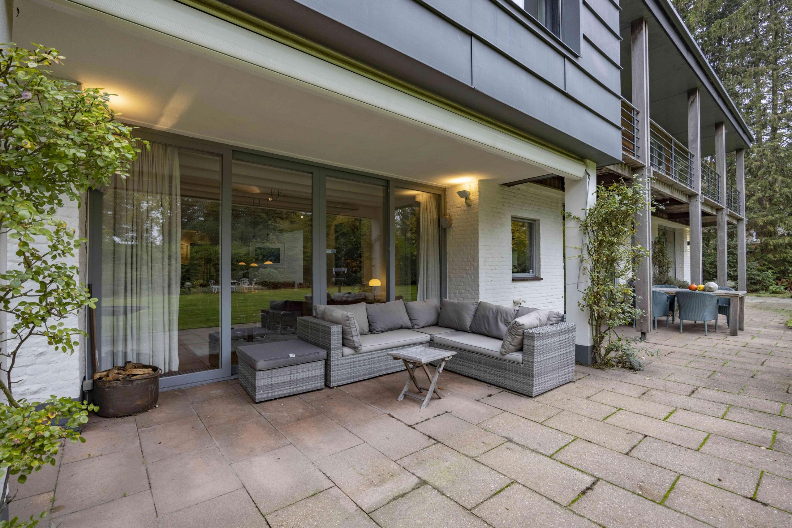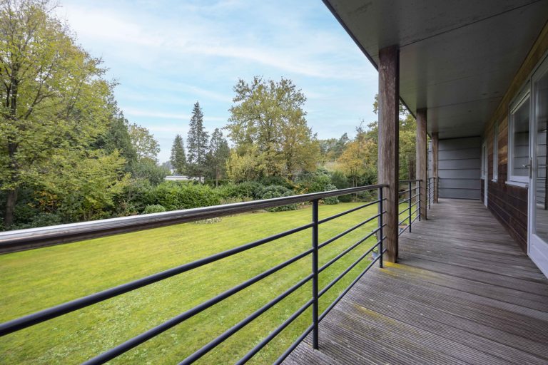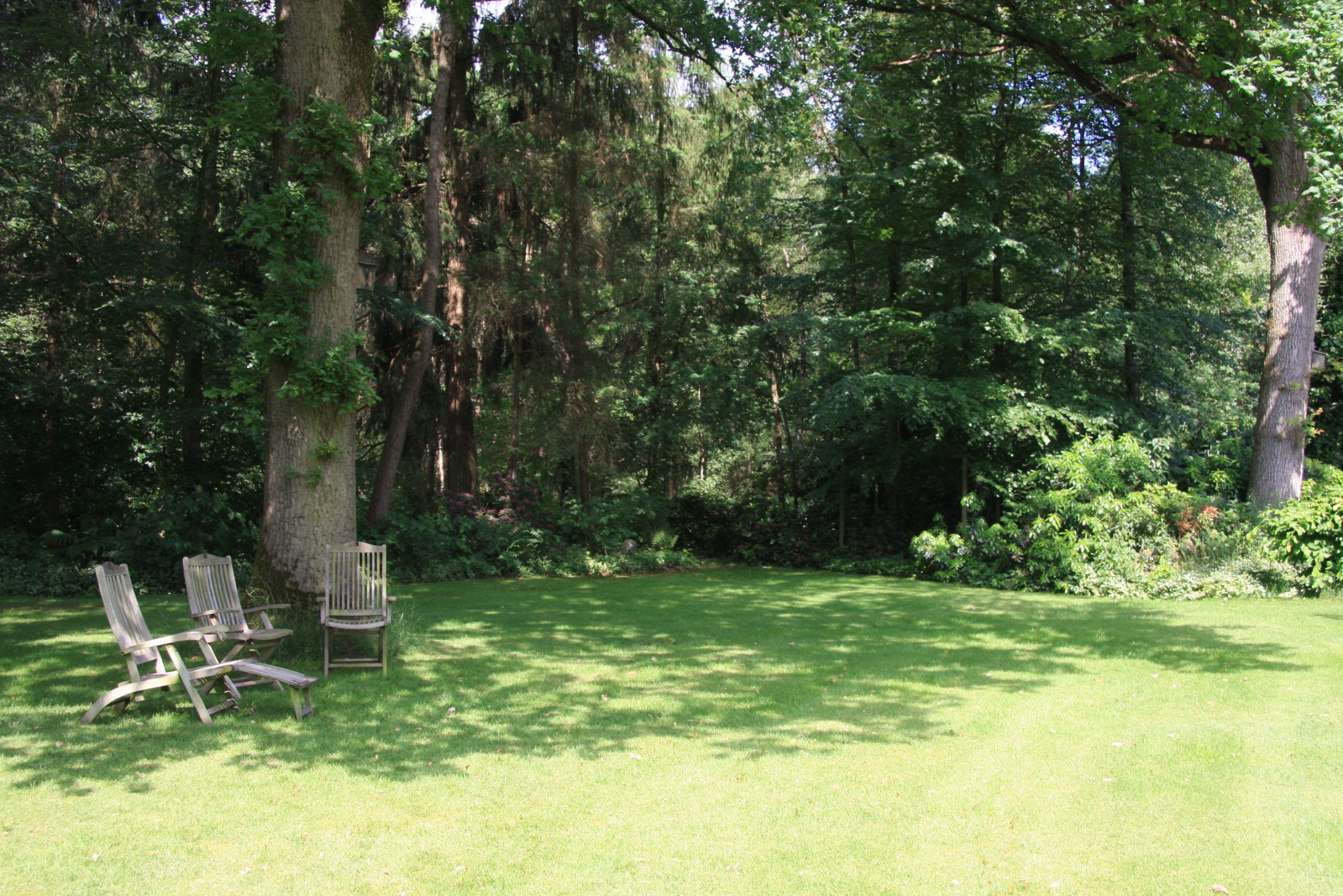 Aan de achterzijde van het perceel bereikt u -via een houten bruggetje- het achterliggende bos voor een ontspannende wandeling of om uw hond uit te laten.