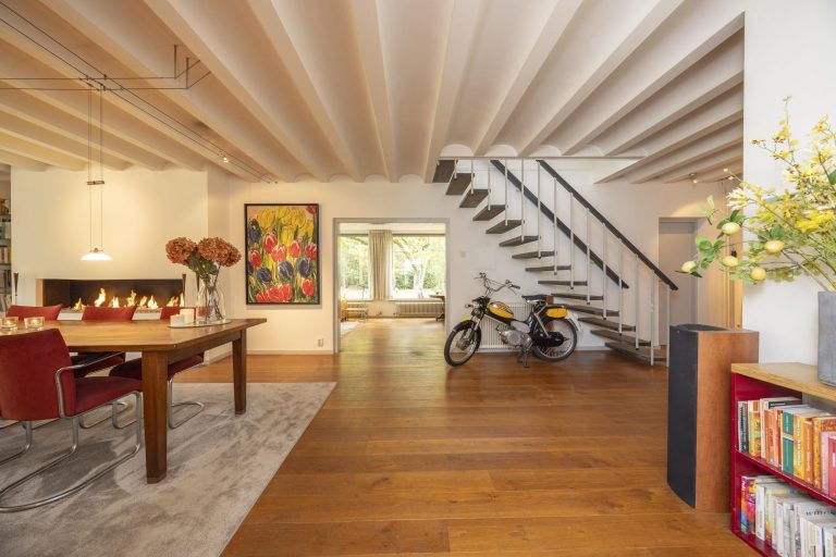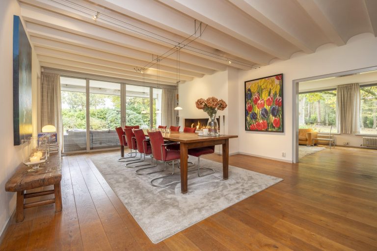 Grote raampartijen zorgen voor een natuurlijke verbinding tussen binnen en buiten, terwijl de ruimtelijke indeling uitnodigt tot samen zijn.