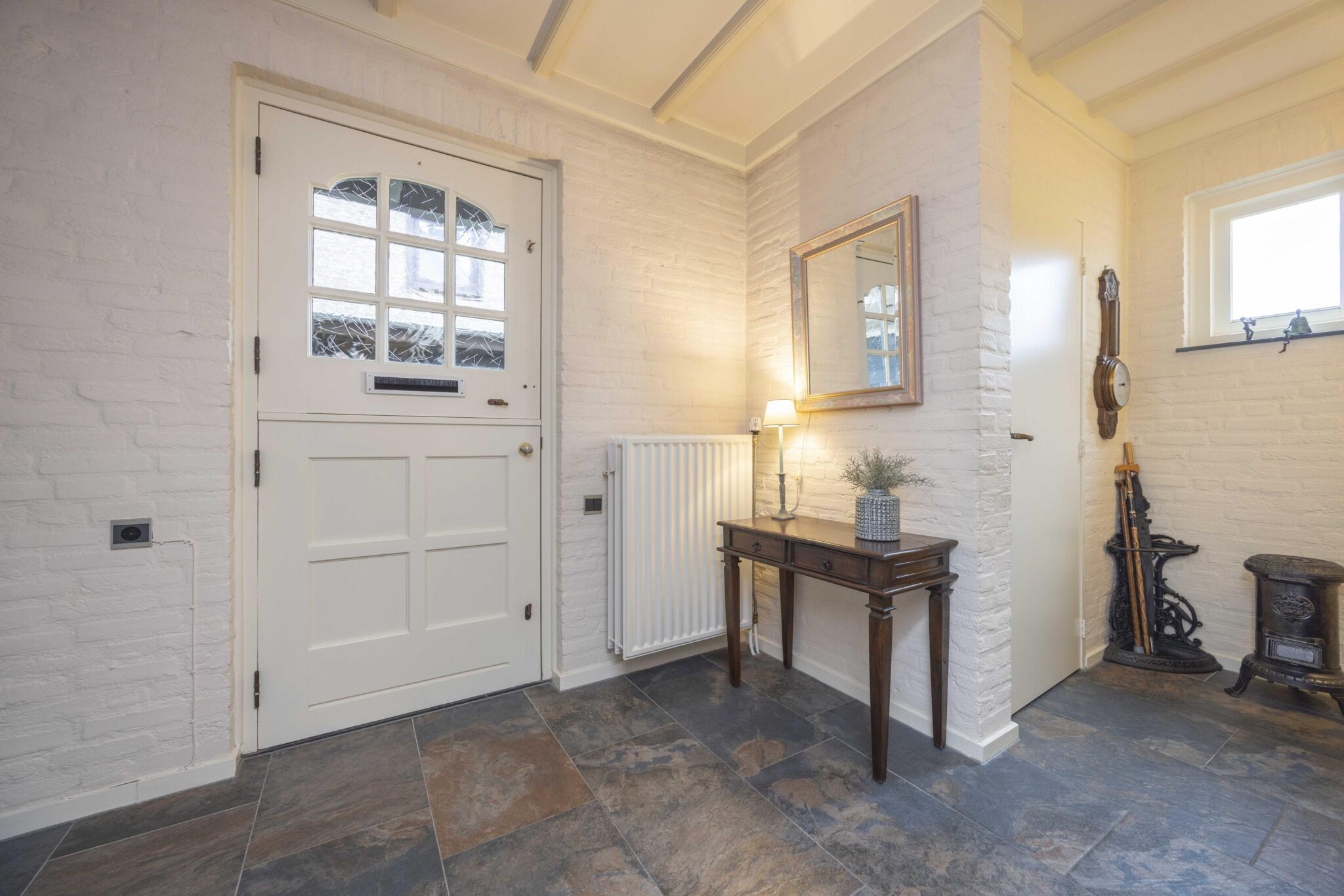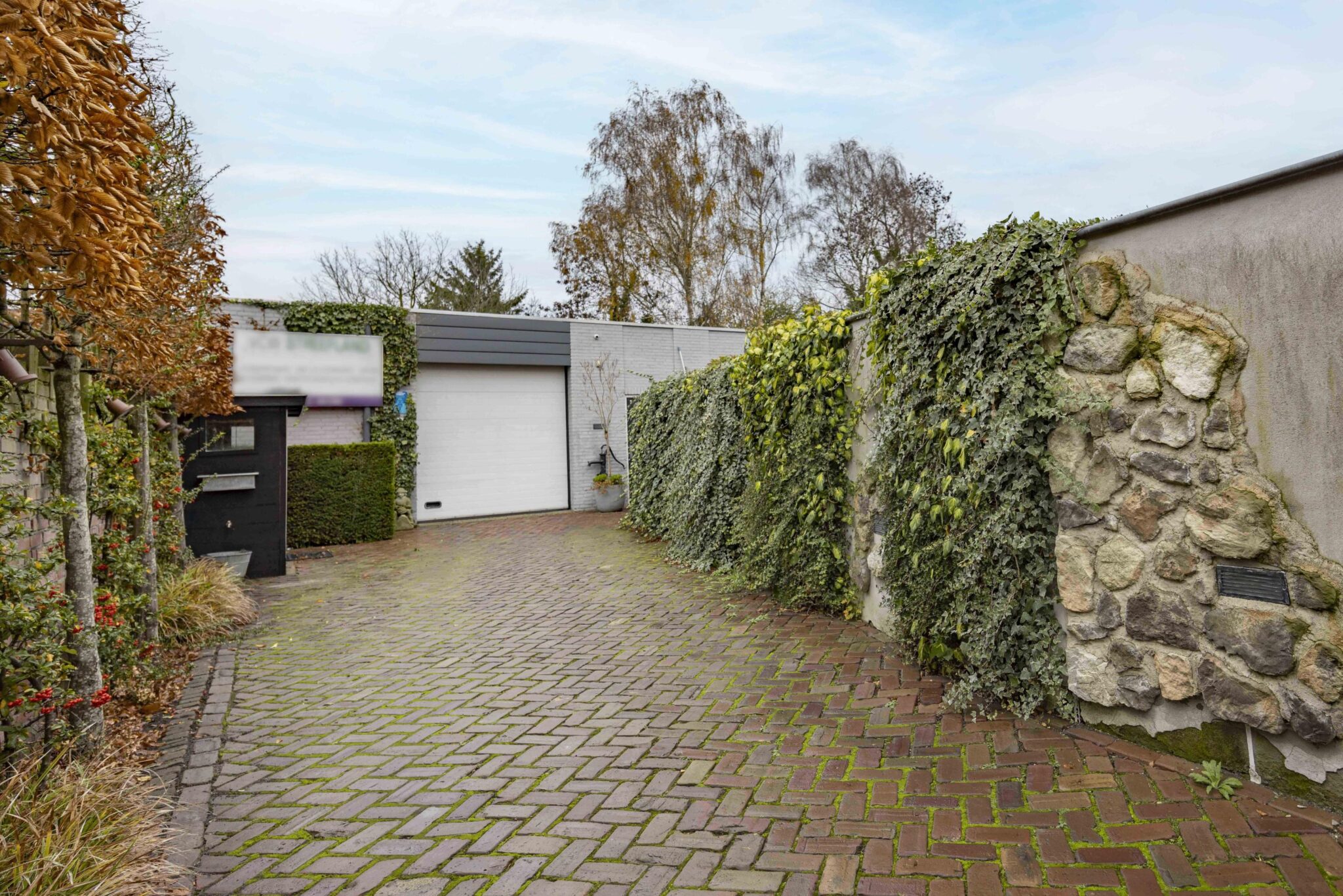 De voortuin is verzorgd aangelegd met volwassen groen en biedt twee opritten. Een oprit geeft toegang tot de werkplaats, de andere leidt naar de woning en biedt ruimte aan meerdere voertuigen.