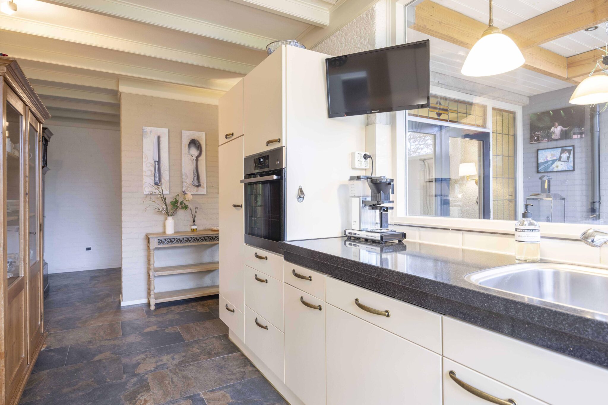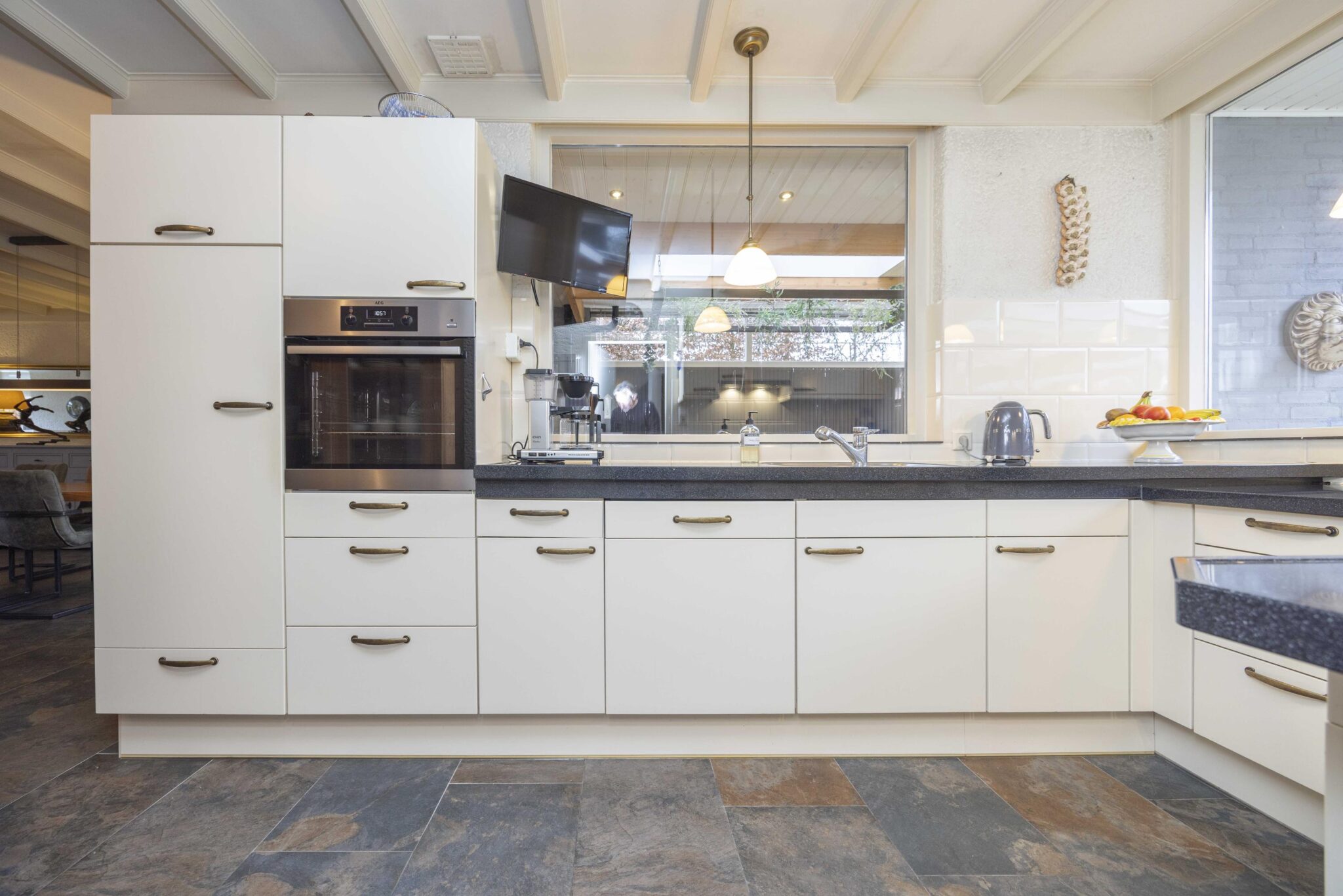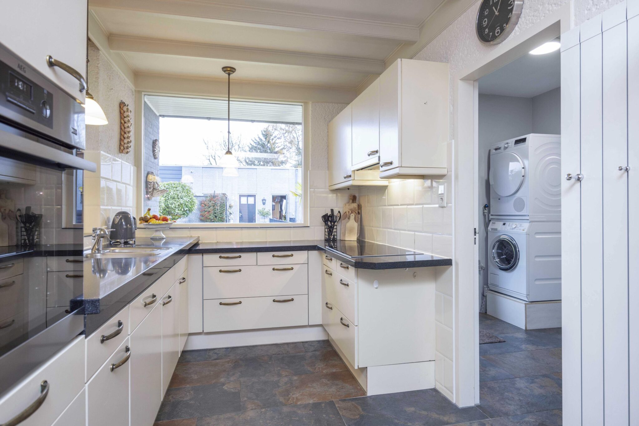 De keuken is uitgerust met een inductiekookplaat met vier zones, een afzuigkap, oven, koelkast, vaatwasser en spoelbak. Vanuit de keuken bereikt u de bijkeuken, waar de aansluitingen voor witgoed zijn gerealiseerd en waar tevens een deur naar de tuin en de garage aanwezig is.