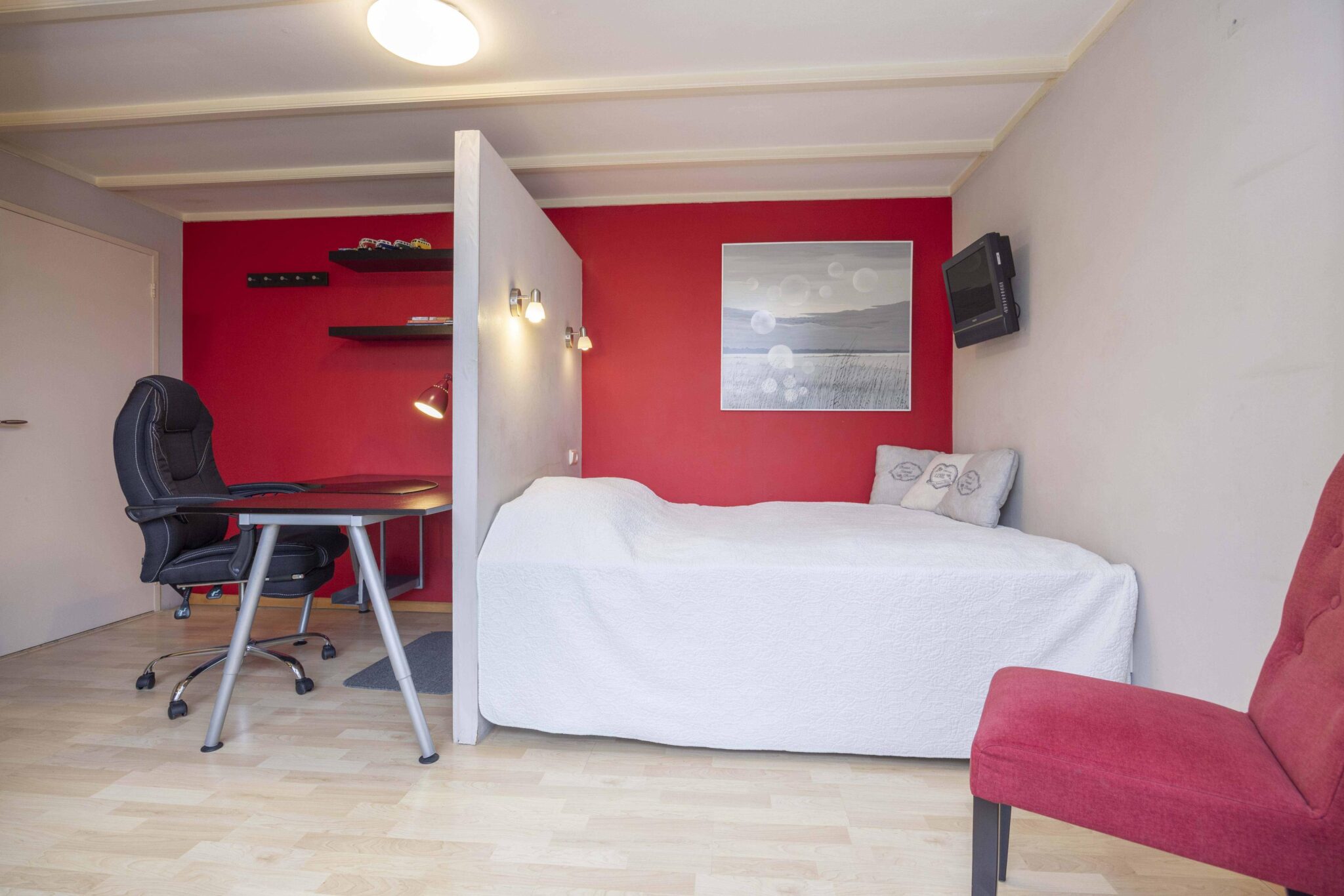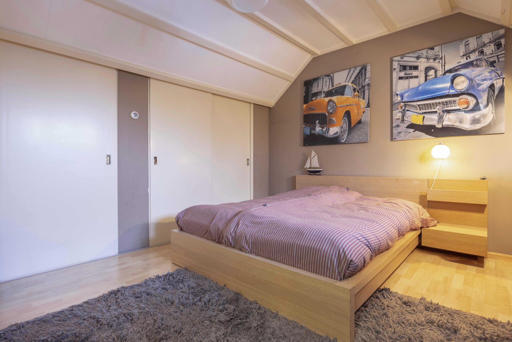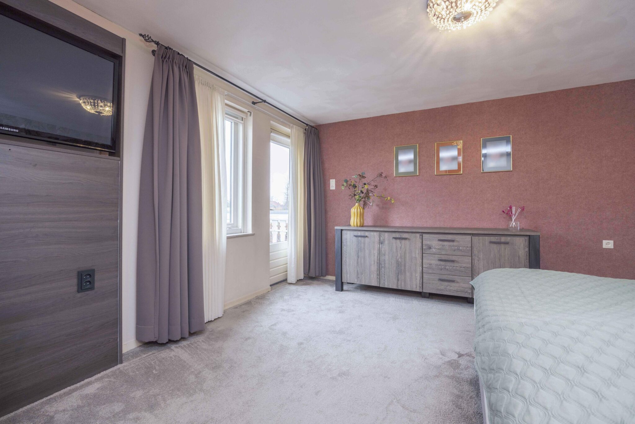 Vanuit de overloop bereikt u de vierde slaapkamer. Deze kamer beschikt over een inbouwkast, een dakkapel met rolluik, airco en een wastafel.
