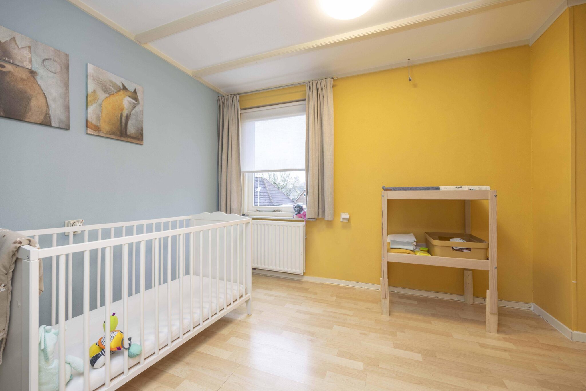 Vanaf de overloop zijn drie slaapkamers en de badkamer bereikbaar. Twee slaapkamers zijn afgewerkt met een laminaatvloer. Een van deze kamers, momenteel in gebruik als kinderkamer, is voorzien van een rolluik. De andere slaapkamer, aan de achterzijde, heeft een balkon en een wastafel.