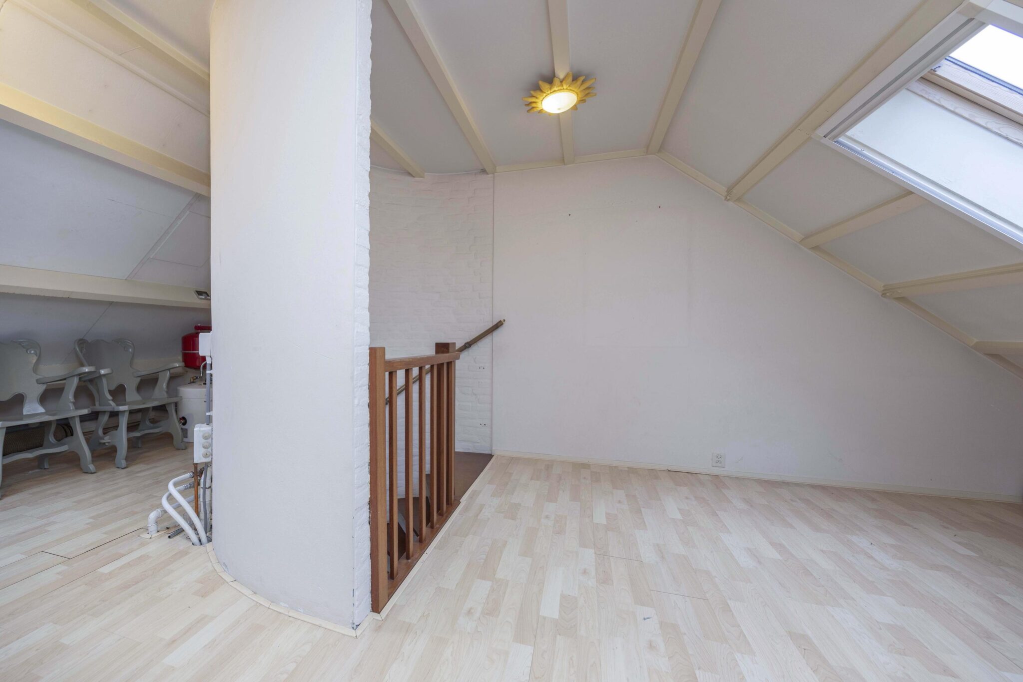 Op de tweede verdieping bevindt zich een ruime overloop met de hybride warmtepomp en cv ketel, de witgoedaansluitingen en twee dakramen. De vloer is hier afgewerkt met laminaat.