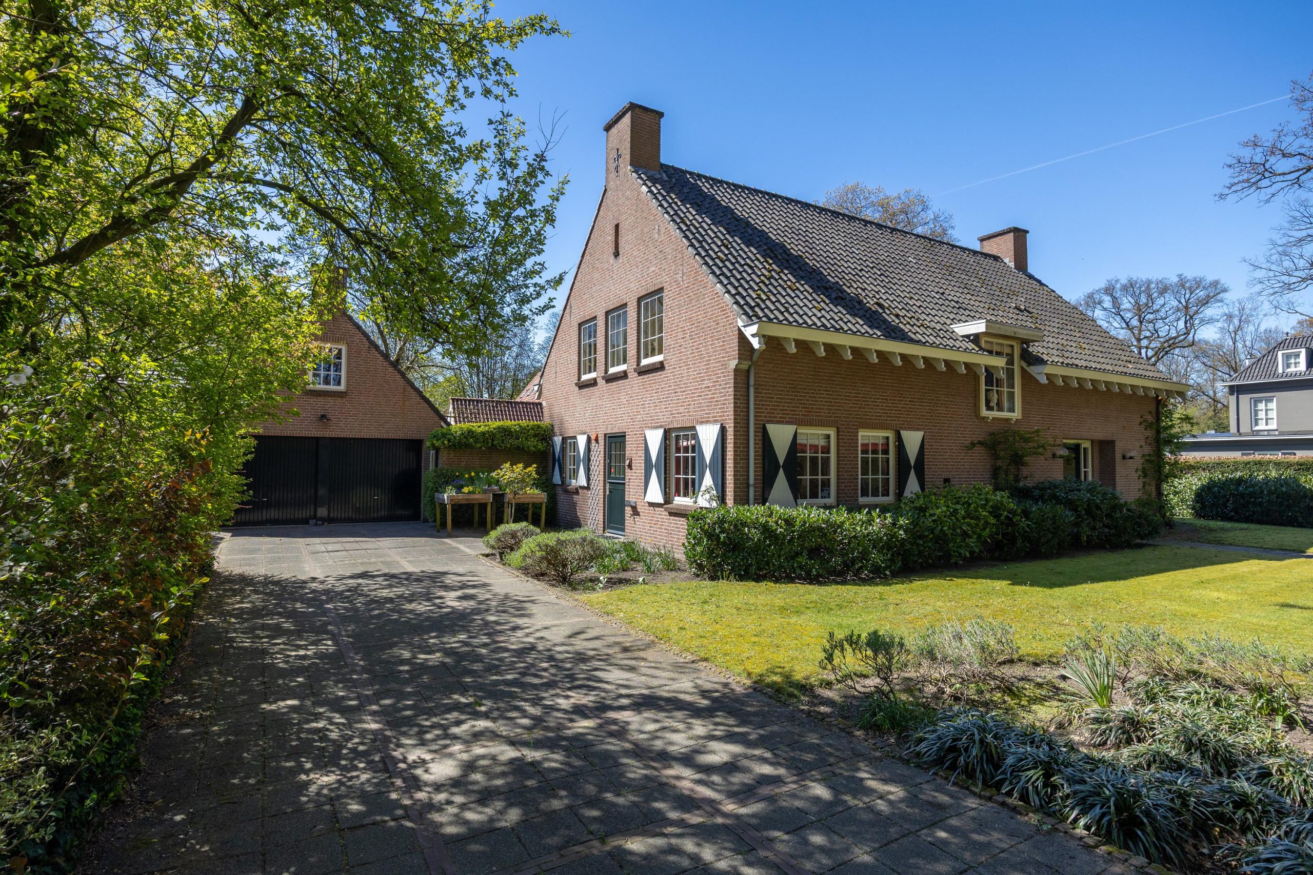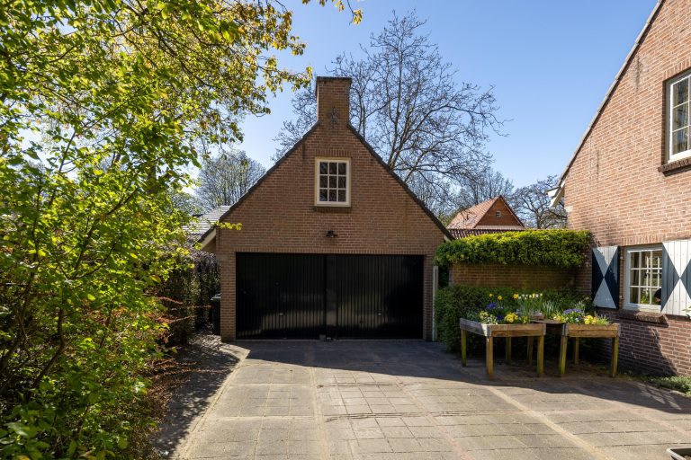 Grenzend aan de garage ligt de oprit, met ruimte voor meerdere voertuigen.