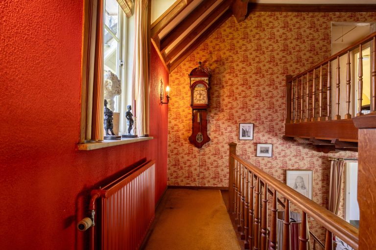 De ruime overloop biedt toegang tot vier slaapkamers en twee badkamers.