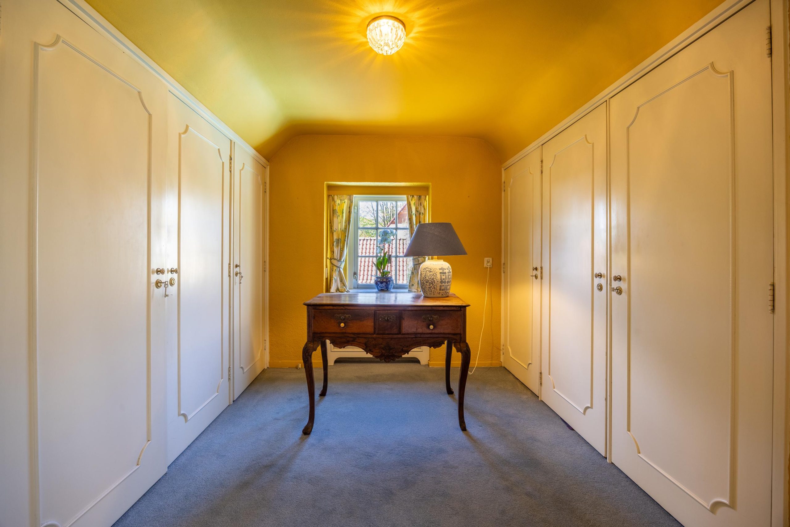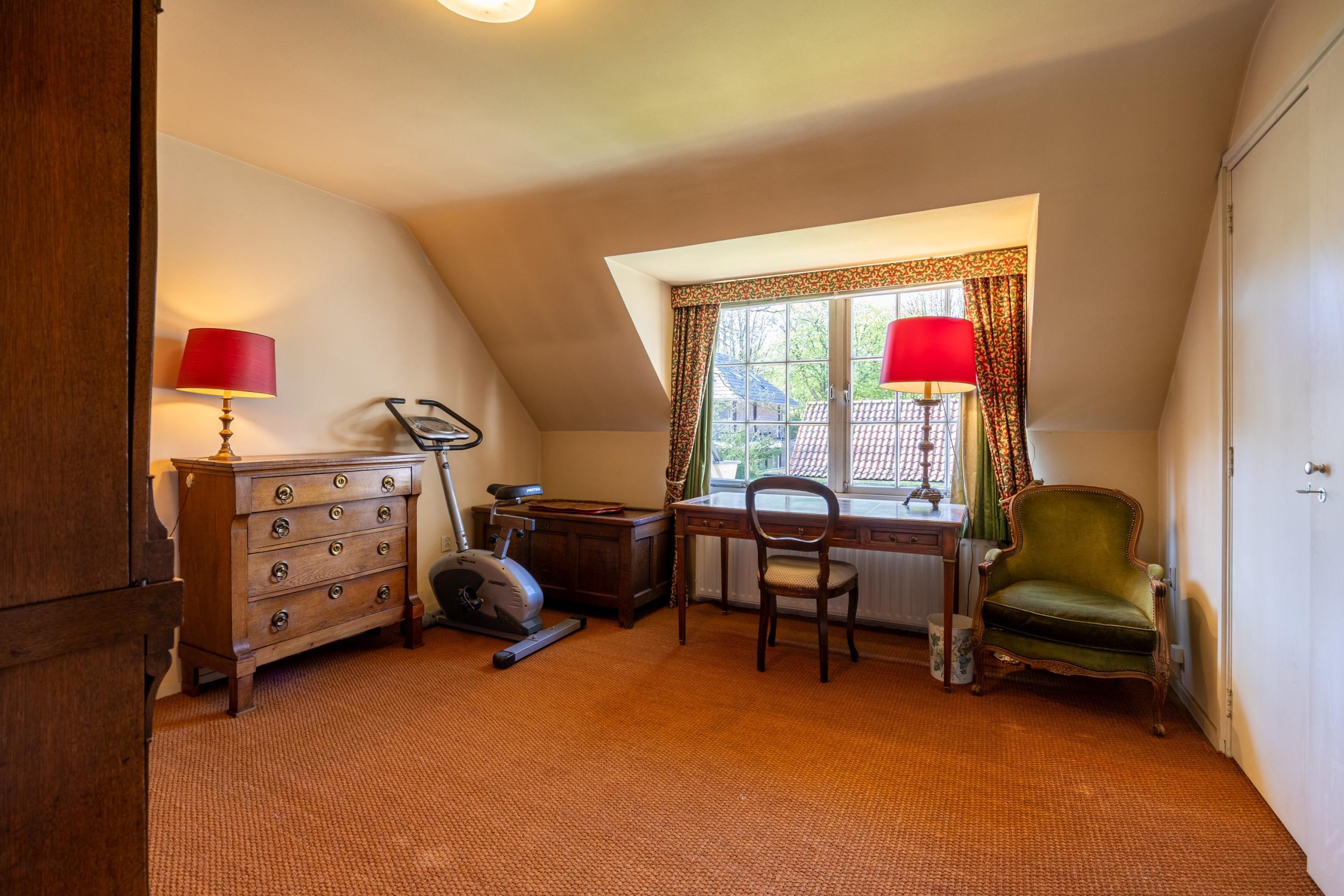 De volledige verdieping is afgewerkt met vloerbedekking.
