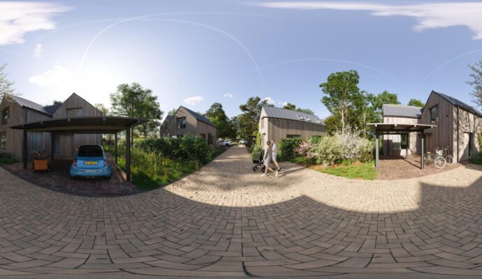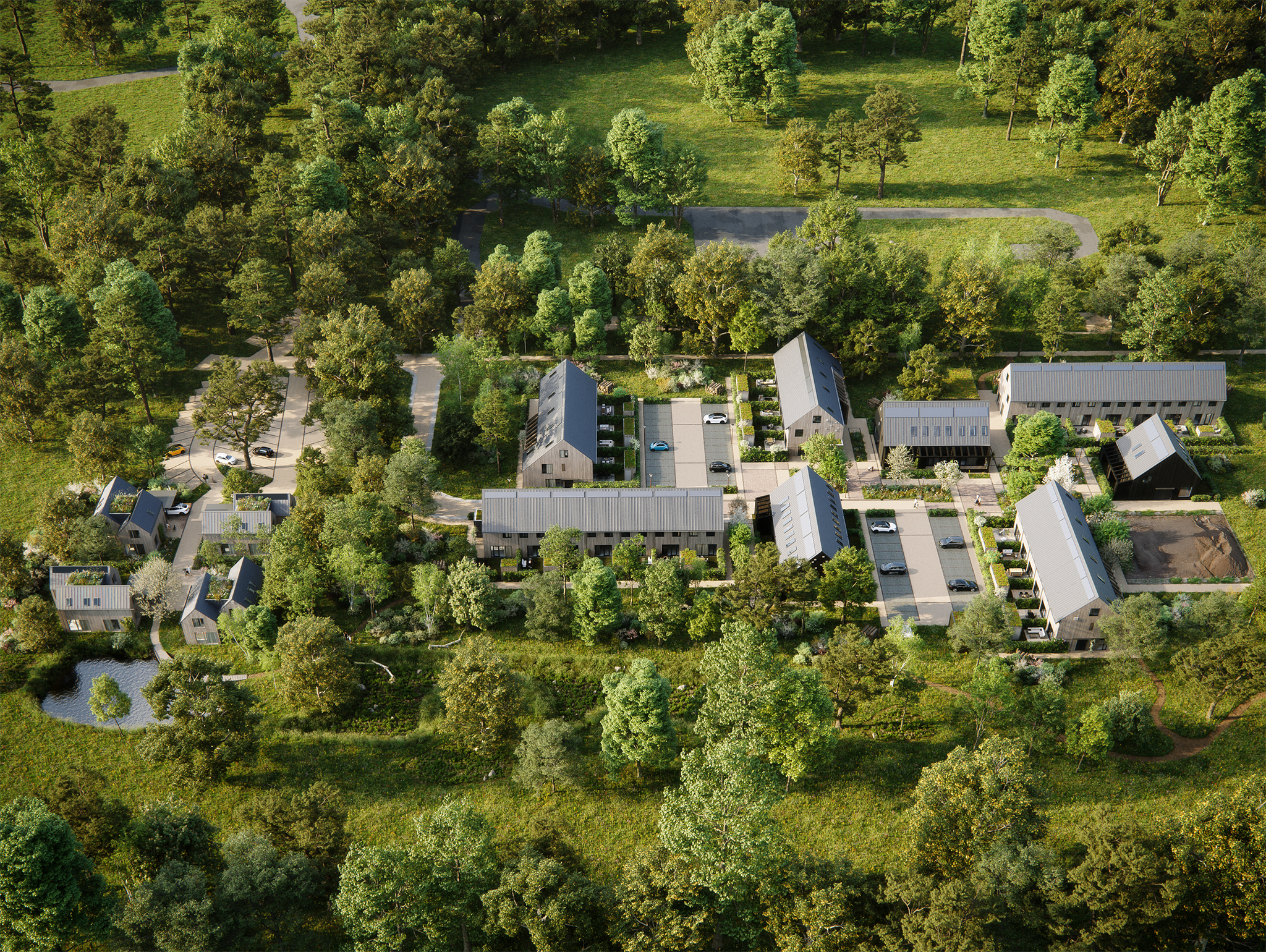 Je woont hier omringd door vele grote bomen en met de natuur als achtertuin. Als je dan bedenkt dat auto’s te gast zijn en overgangen tussen privé en openbaar op een natuurlijke manier worden vormgegeven, begint het beeld zich vast al een beetje te vormen. Vanaf je terras stap je direct de vrije natuur in. Dit is een unieke manier van buiten leven. Totaal ontspannen in de natuur van Vught.